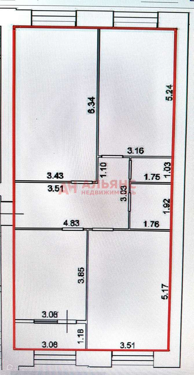 Жилая площадь 56,4 м2 ( изолированные комнаты 21,7 м2, 18,1 м2, 16.5 м2,)