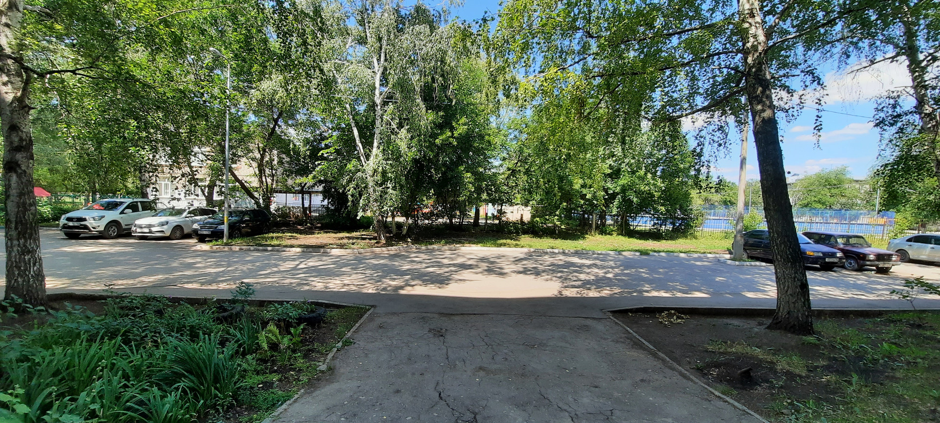 Двор -просто "сказка" - зелень, чистота, парковок предостаточно.