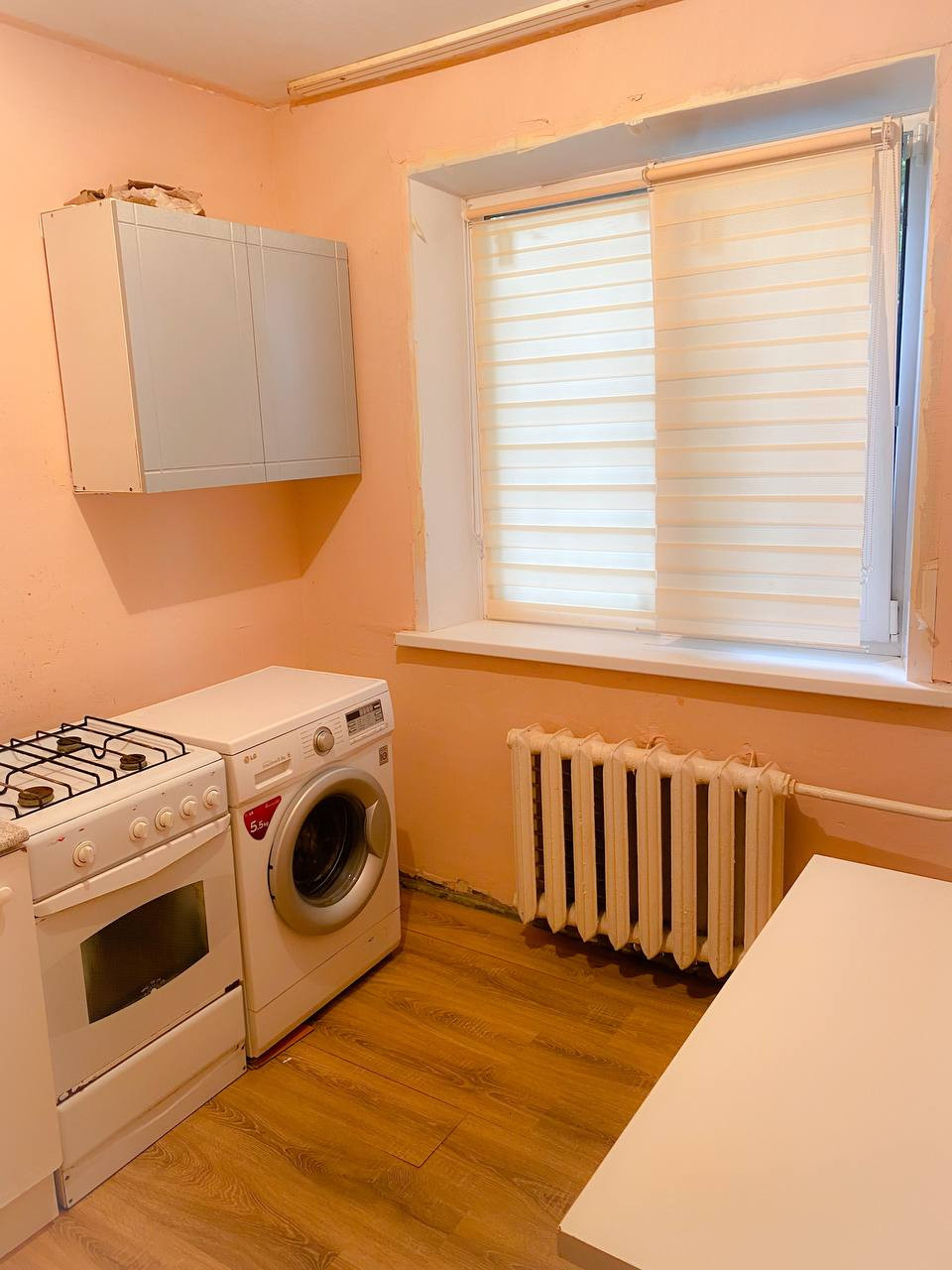Общая площадь 30 м2, жилая 18.9 м2, кухня 5.4 м2. С/у совмещенный. В квартире остаётся  стиральная машина.