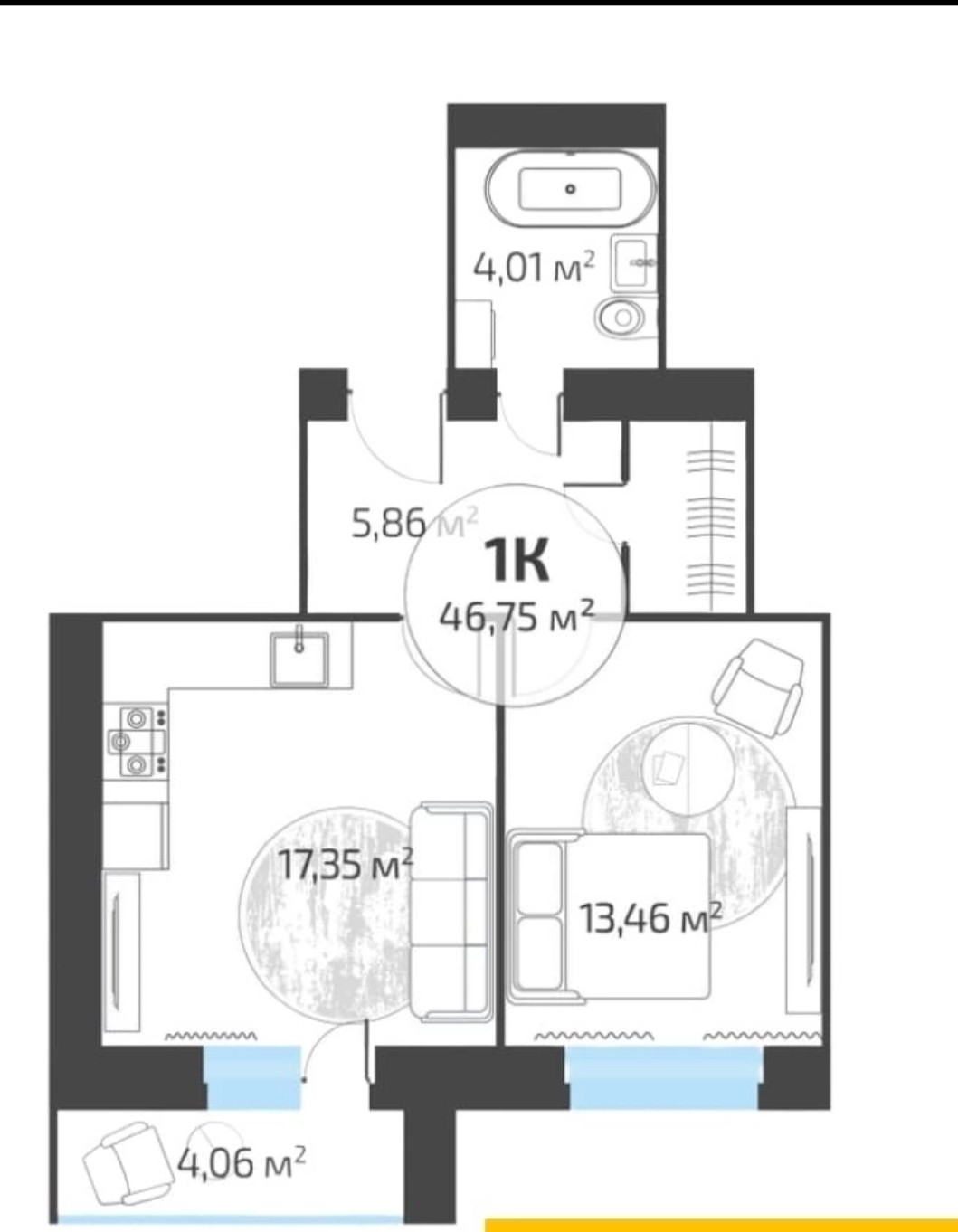 Общая площадь 47 м2