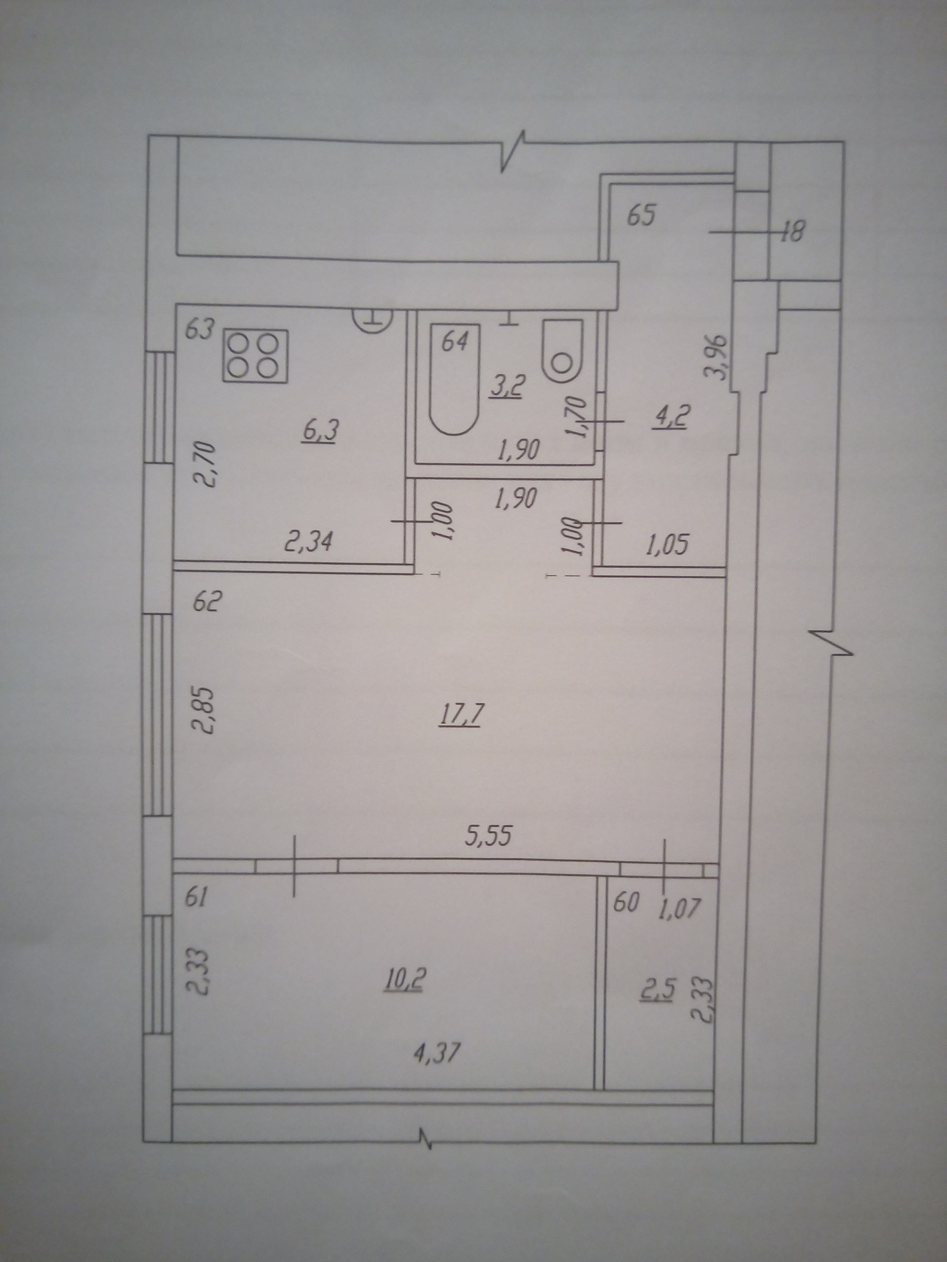Площадь кухни 6.3 м2