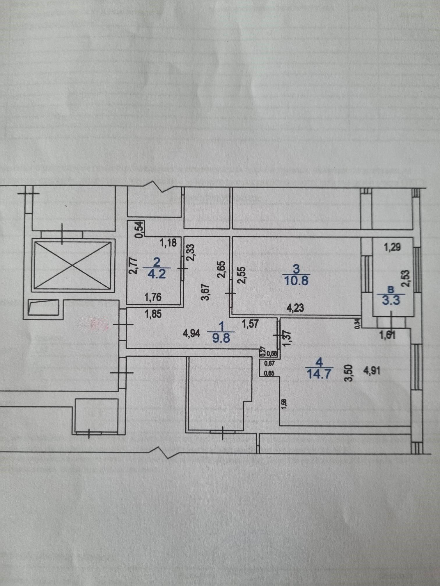 Общая площадь 39.5 м2