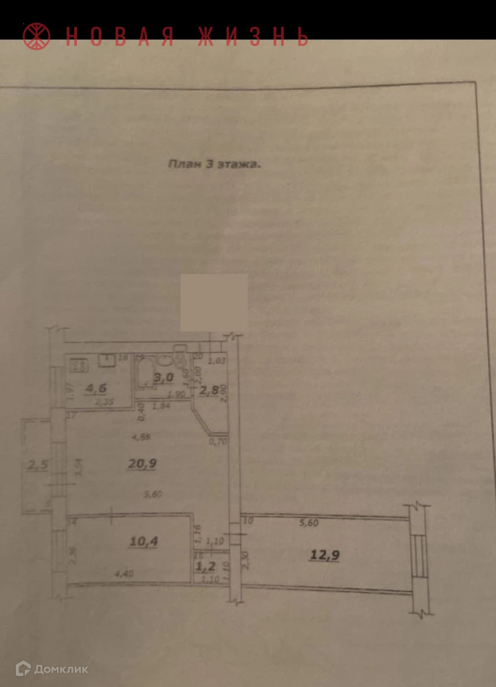 Жилая площадь 23.3 м2