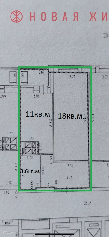 Жилая площадь 18 м2