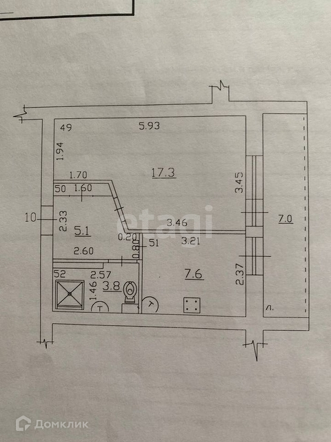Квартира общей площадью 37,3 м2 с учётом лоджии расположена на 3м этаже кирпичного дома.