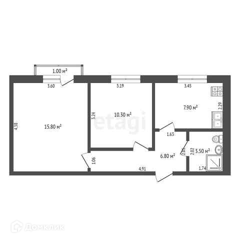 Общая площадь 44.3 м2