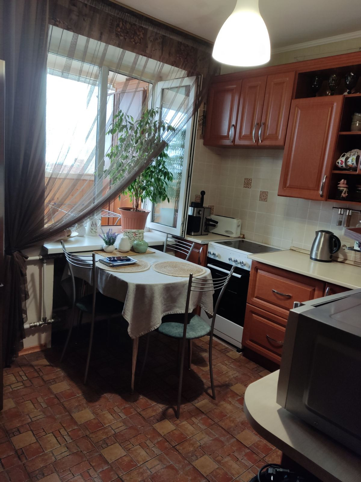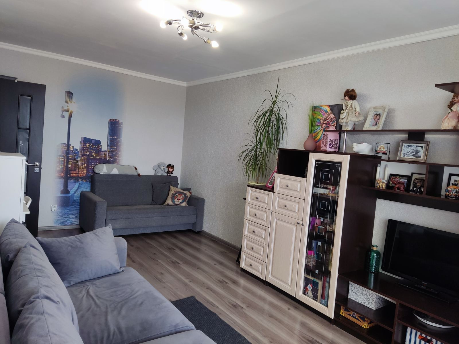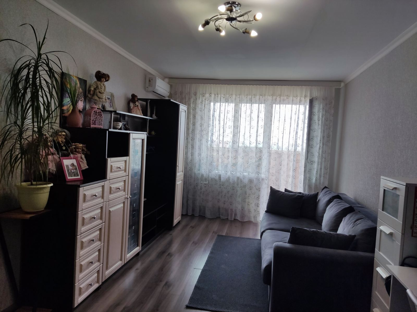 Общая площадь квартиры S- 43 кв.м., кухня 7,8 кв.м., комната- 18 кв.м. Состояние хорошее, не угловая, очень теплая, есть большая застекленная лоджия на кухню и комнату с внутренней отделкой. Установлены счетчики на воду. В кваритре остается: кухонный гарнитур, плита, шкаф-купе, стенка, кондиционер.