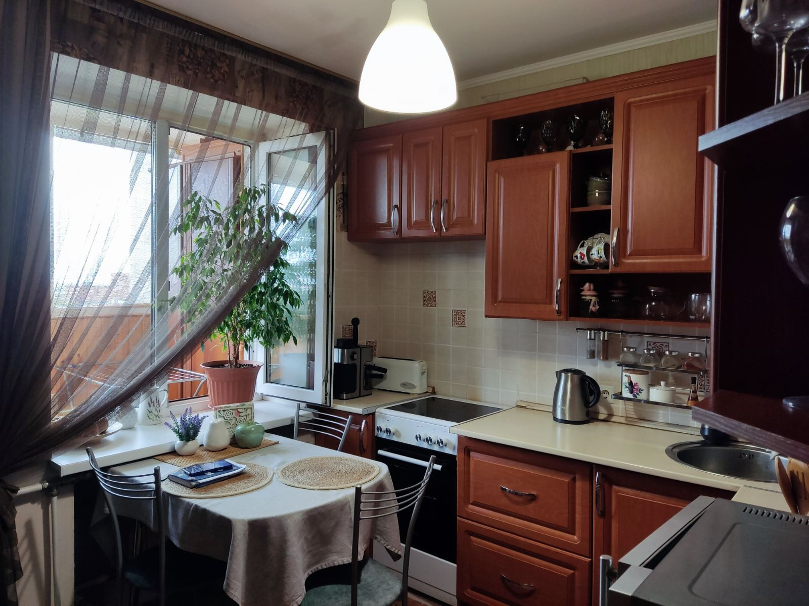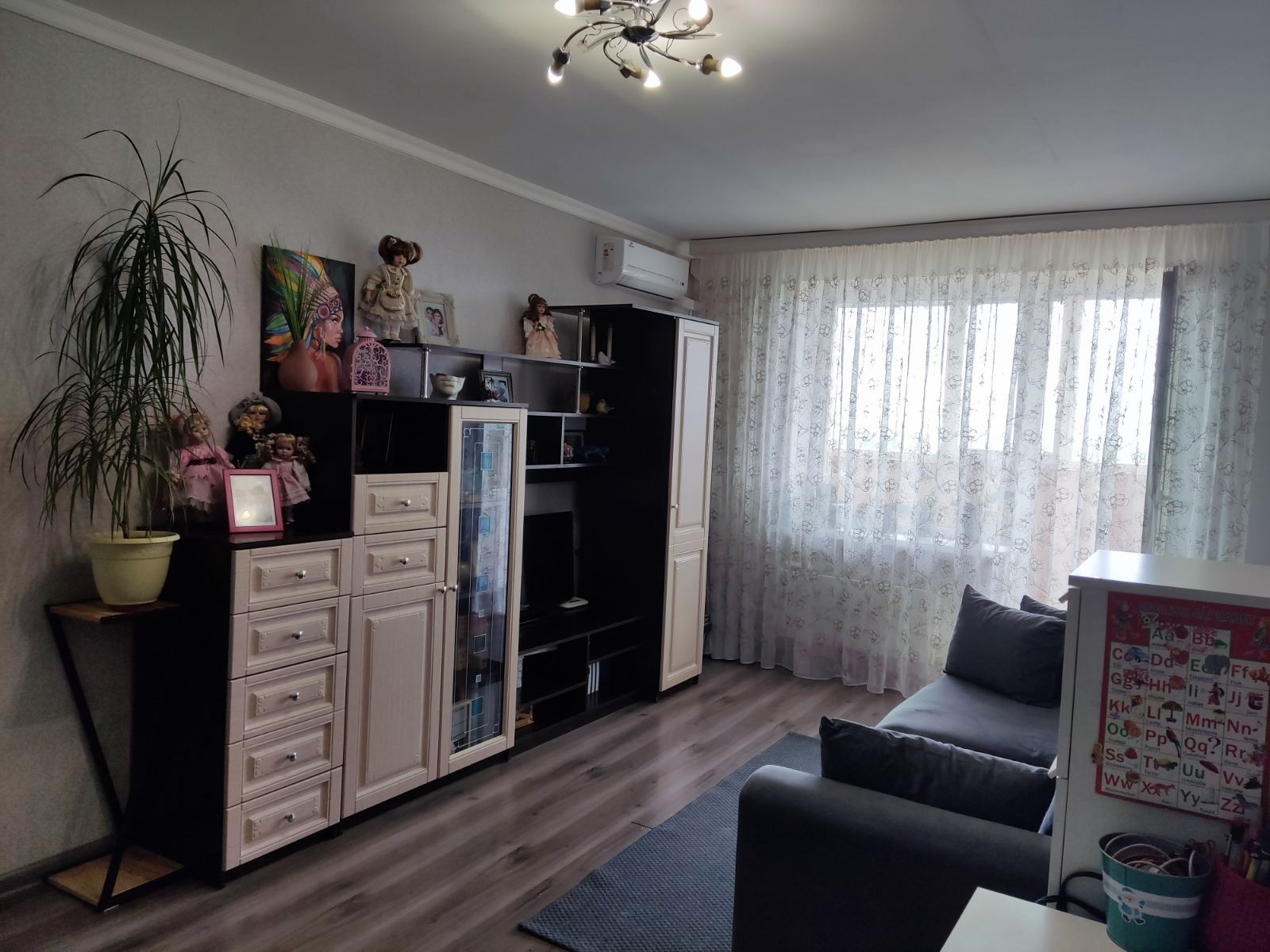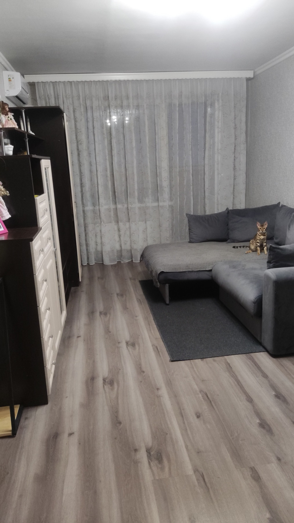 Общая площадь квартиры S- 43 кв.м., кухня 7,8 кв.м., комната- 18 кв.м. Состояние хорошее, не угловая, очень теплая, есть большая застекленная лоджия на кухню и комнату с внутренней отделкой. Установлены счетчики на воду. В кваритре остается: кухонный гарнитур, плита, шкаф-купе, стенка, кондиционер.