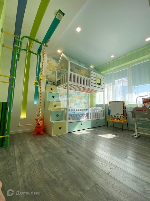 В детской комнате создан уют и комфорт с помощью интерьерных подсвечиваемых ниш, а двухъярусная кровать станет центром притяжения для ребенка и его друзей.