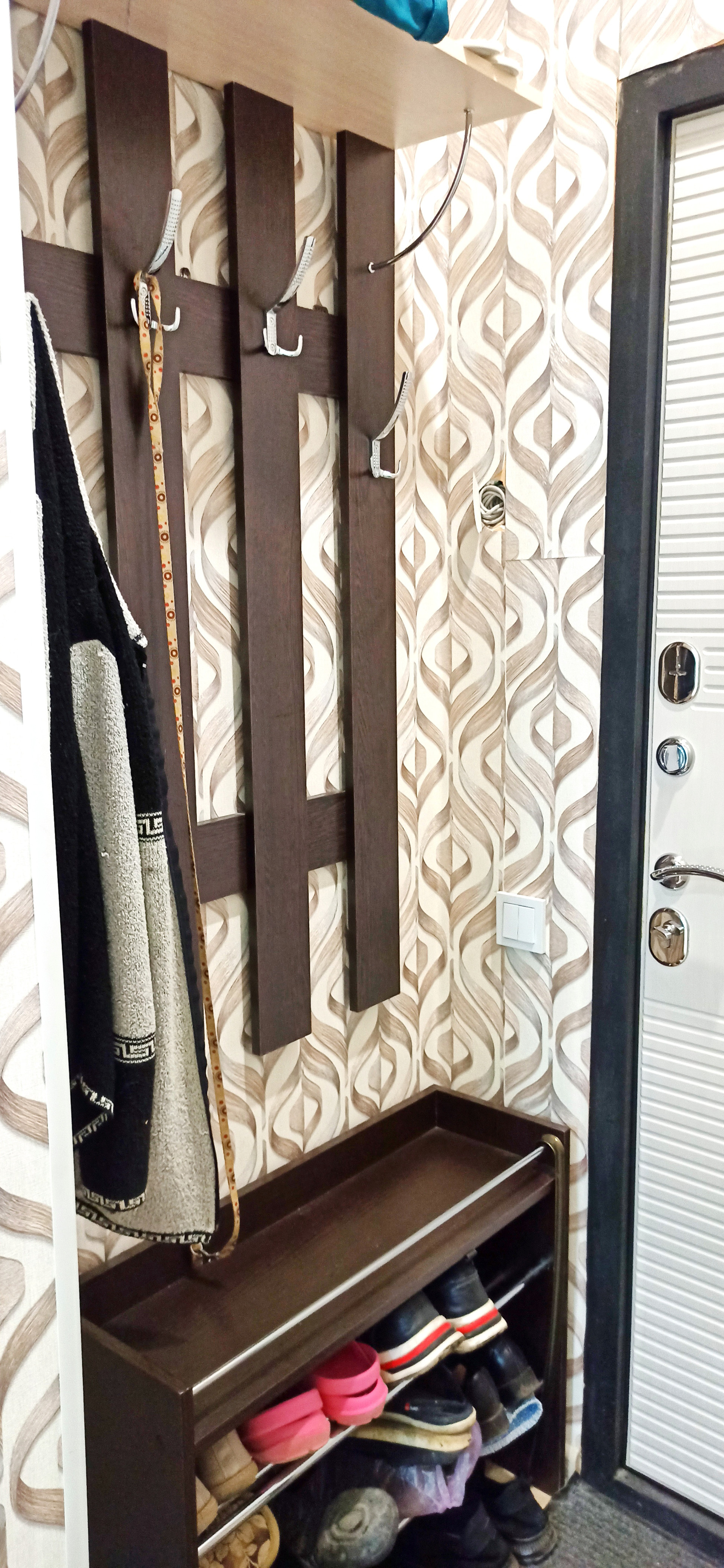 В ванной комнате стоит инсталляция, ванна с тропическим душем, на полу плитка. Полы в квартире бетонные, не деревянные. На полу лежит линолеум. Так же имеется очень удобная гардеробная, со стеллажами, где вы можете разместить все свои вещи. Проводка вся новая. Входная дверь не от застройщика , ставили новую добротную толстую дверь. Несмотря на небольшую площадь квартиры, в ней есть всё необходимое для комфортной жизни.