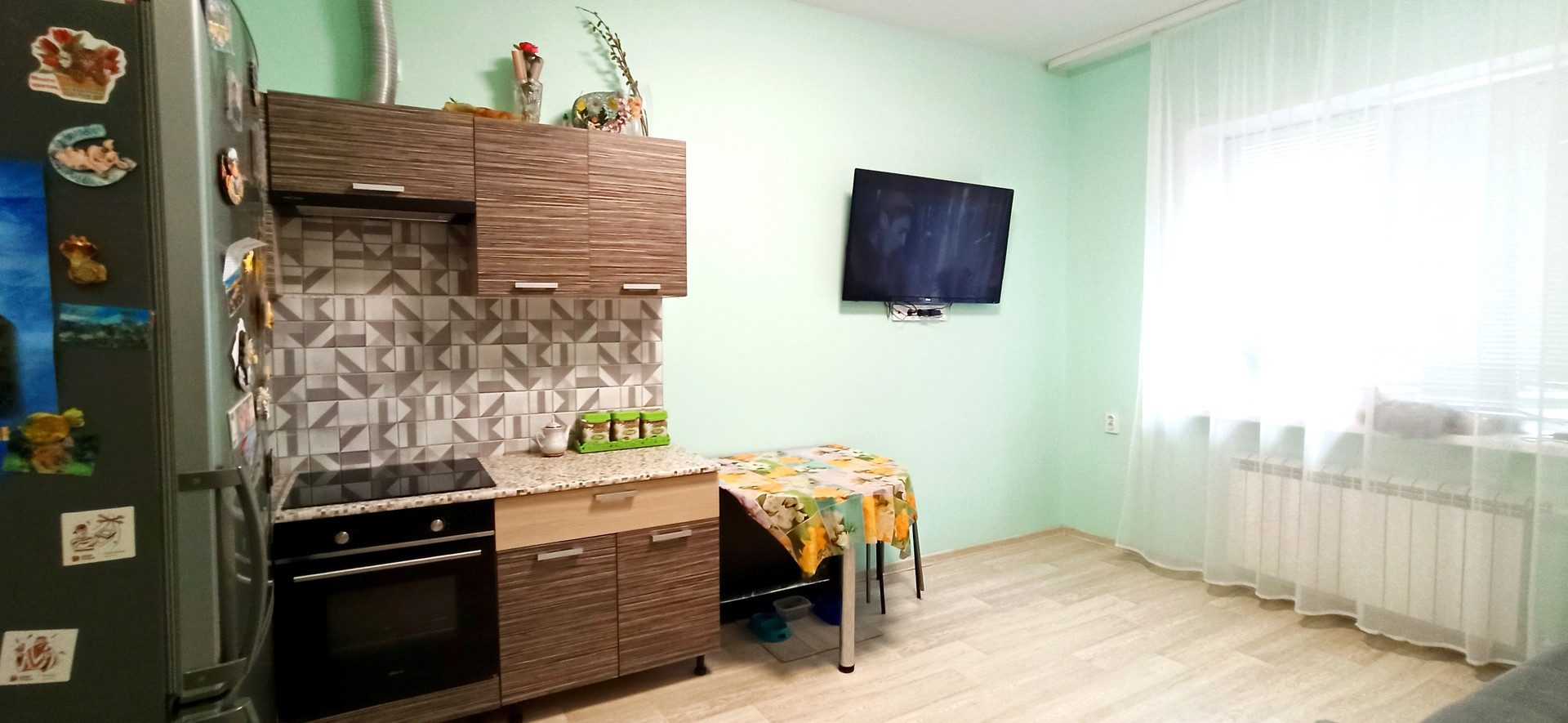 В квартиру можно заехать и жить. Развитая инфраструктура, рядом есть продуктовые магазины, детский сад, школа, остановки общественного транспорта.