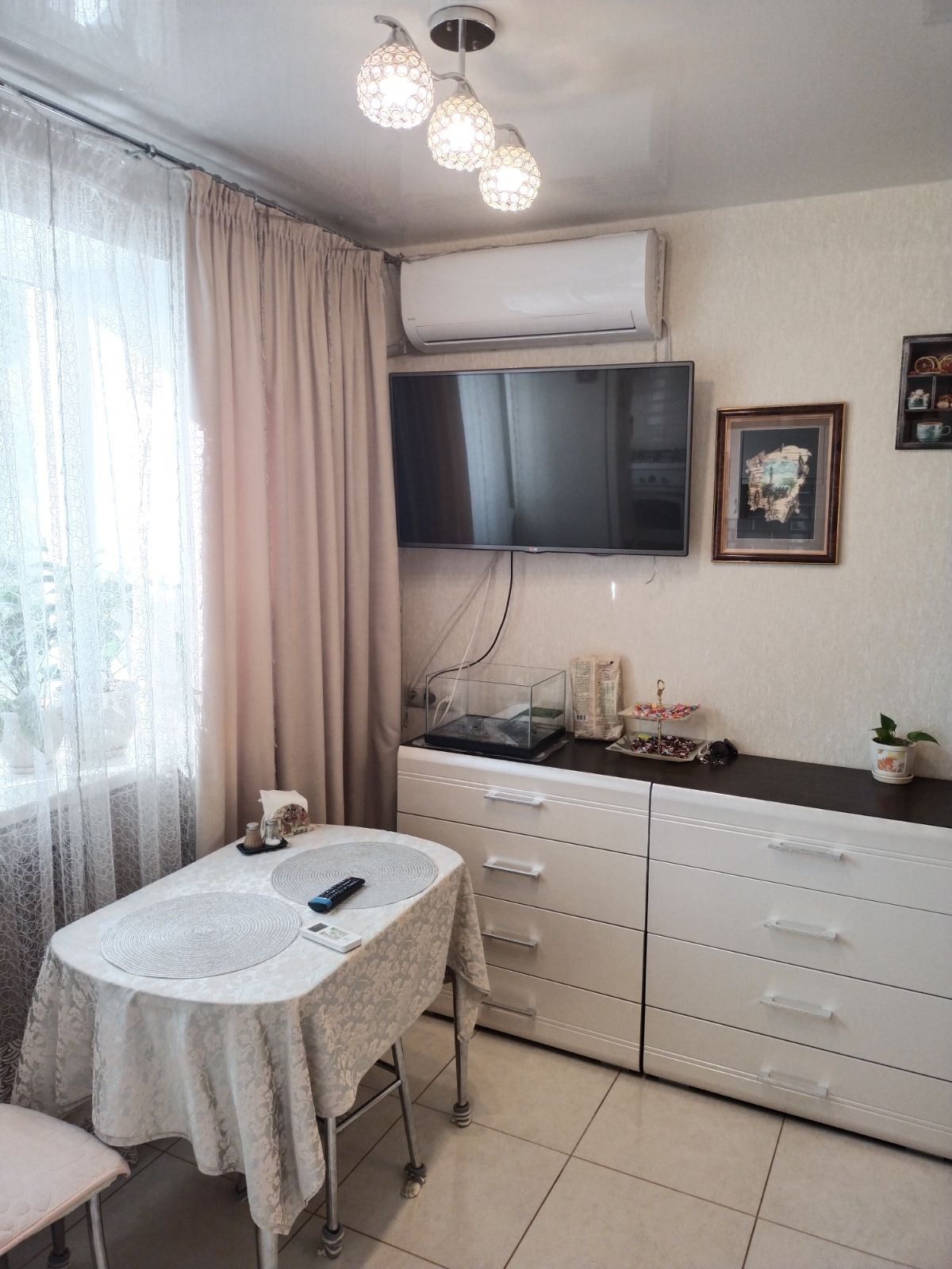 В квартире произведен качественный евроремонт: на полу стяжка пола, стены выровнены, замена системы отопления, новая электропроводка, новые окна, сантехника, кондиционер и т.д. Новым покупателям остается практически вся мебель и техника (заберем только 1 диван, телевизор, стиральную машину и холодильник).