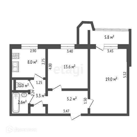 Общая площадь 52.7 м2