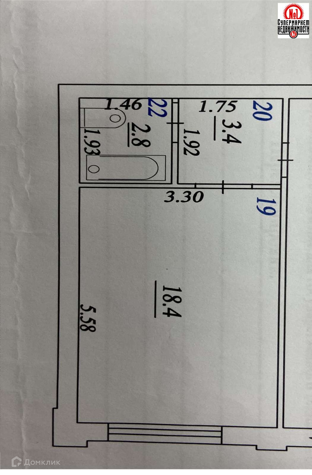 Жилая площадь 18.4 м2