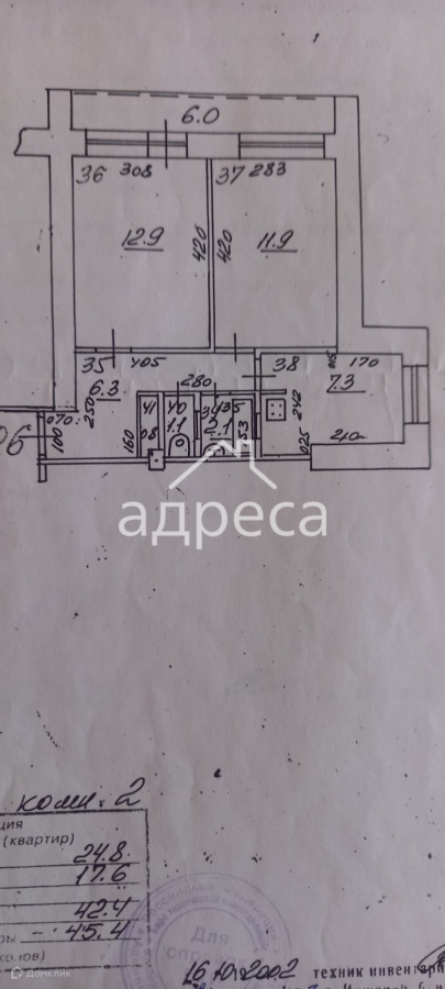 Общая площадь 45.4 м2