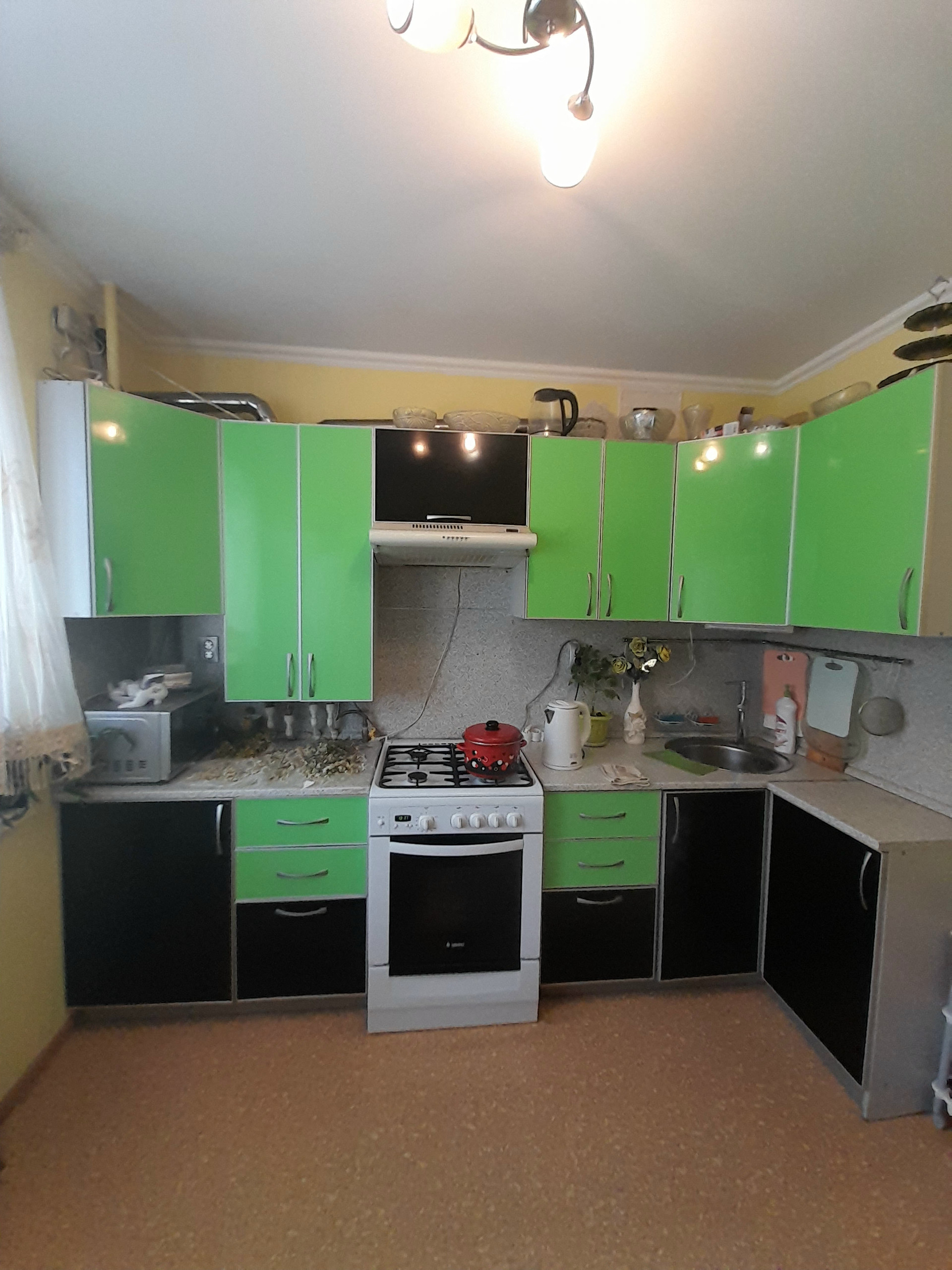 В квартире остаются: 2 кондиционера, большой шкаф-купе в зале, шкаф-купе в прихожей, кухонный гарнитур, вытяжка и мебель в ванной комнате. Хороший торг.