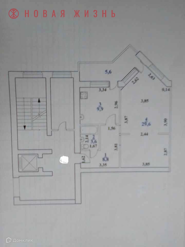 Жилая площадь 29.6 м2