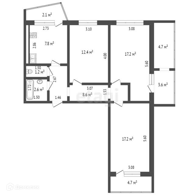 3-комнатная квартира, 74 м2, этаж 4 / 12, на продажу в Самаре, Чернореченская улица, 69