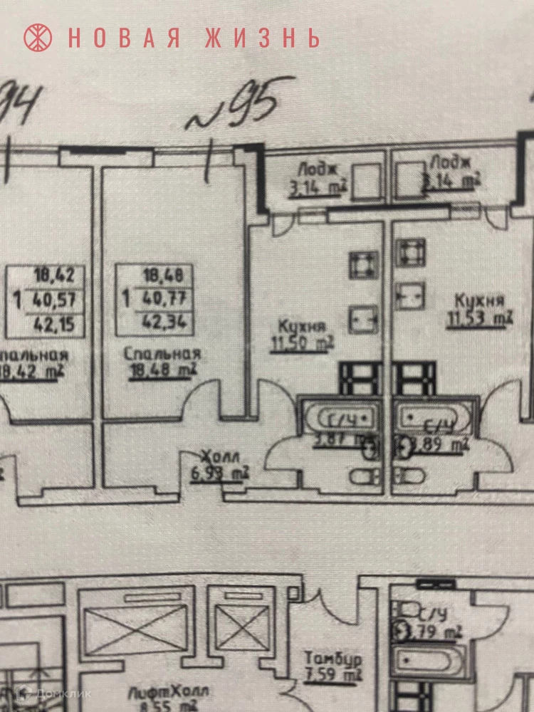Фактическая площадь квартиры включая лоджию – 43.92 м2,