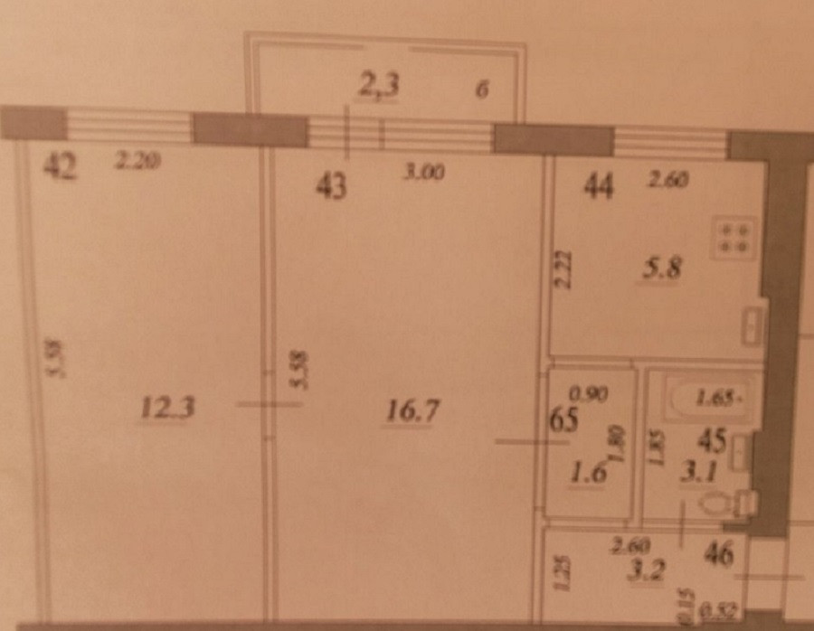 Общая площадь 42.7 м2