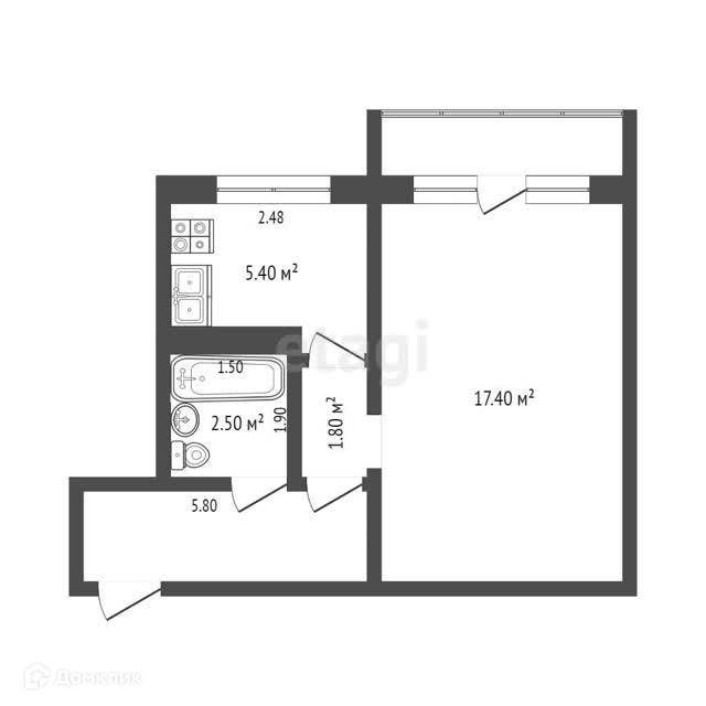 Площадь кухни 5.4 м2