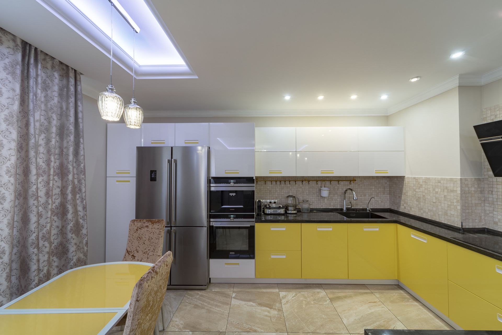 Кухонная зона соединена с гостиной, общая площадь 33 кв.м. В подарок покупателям остается встроенный кухонный гарнитур, варочная панель, вытяжной шкаф и посудомоечная машина.