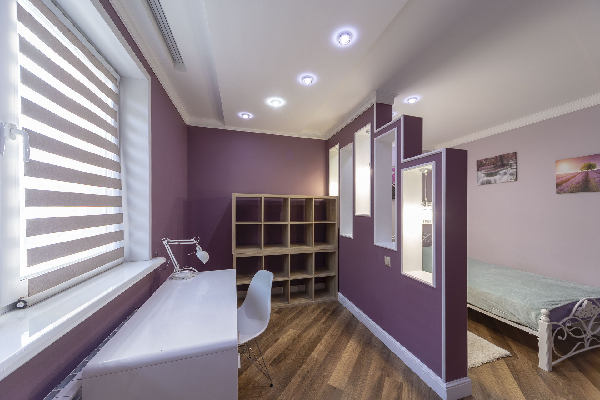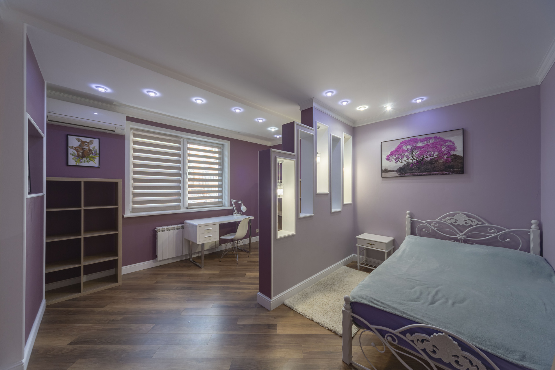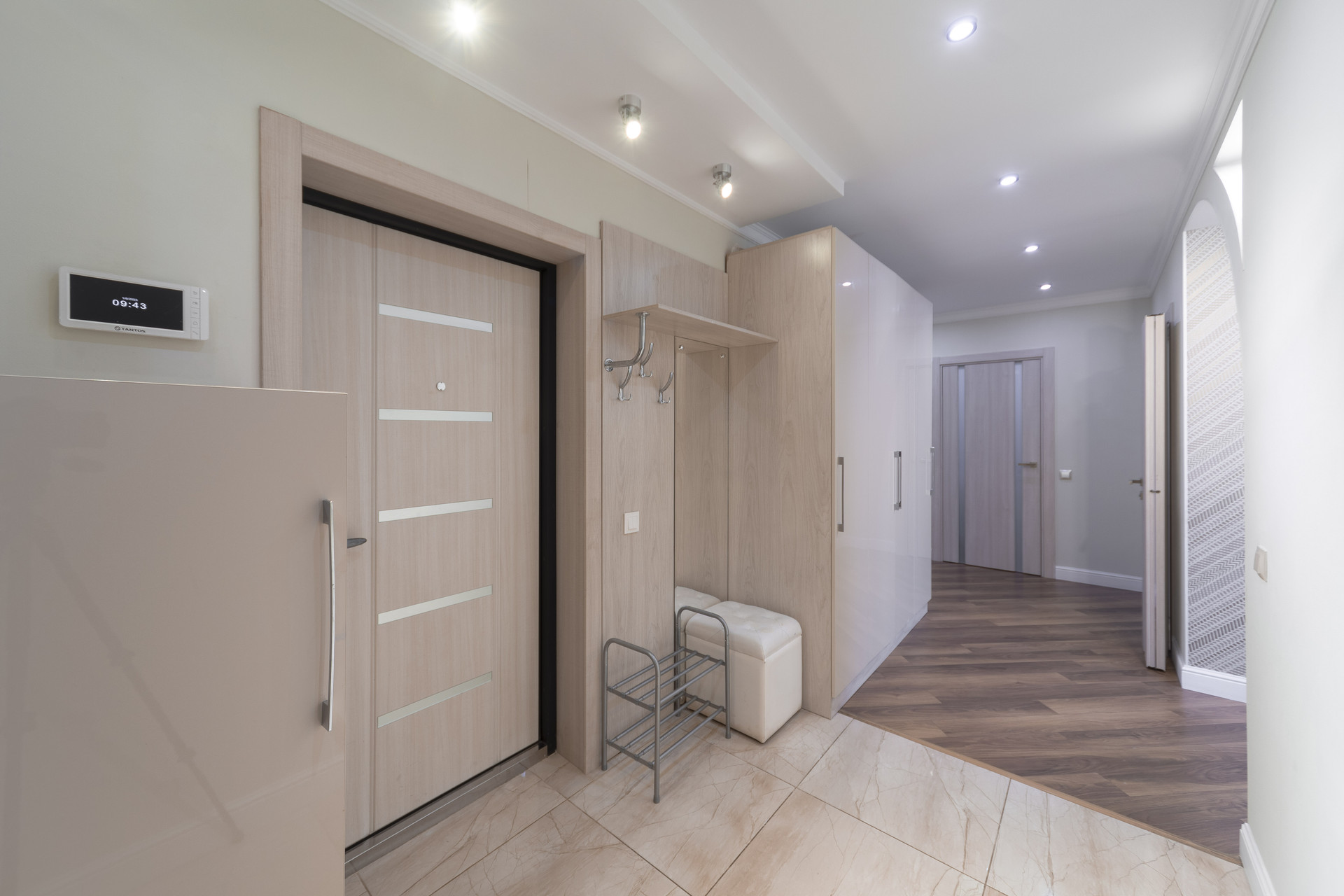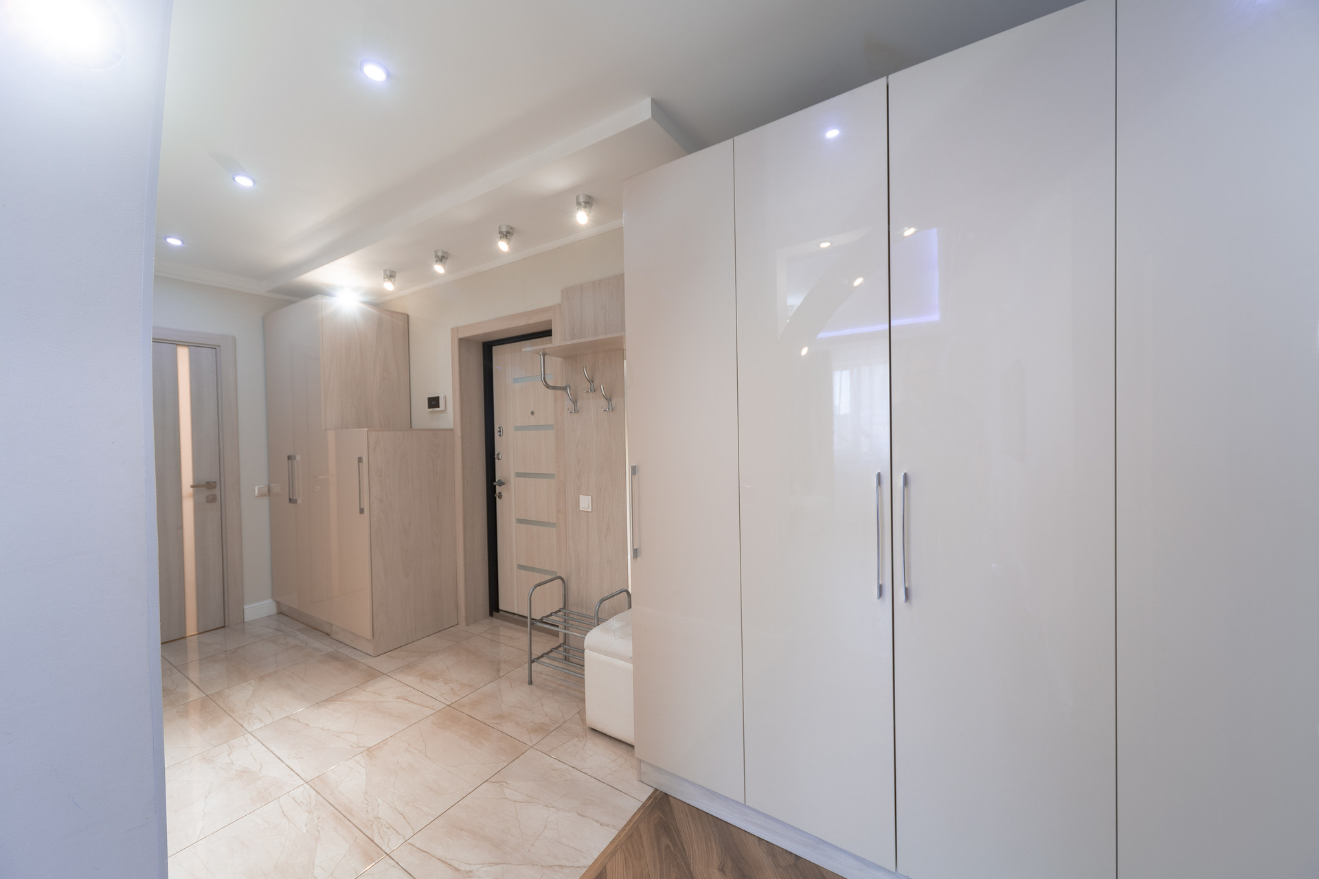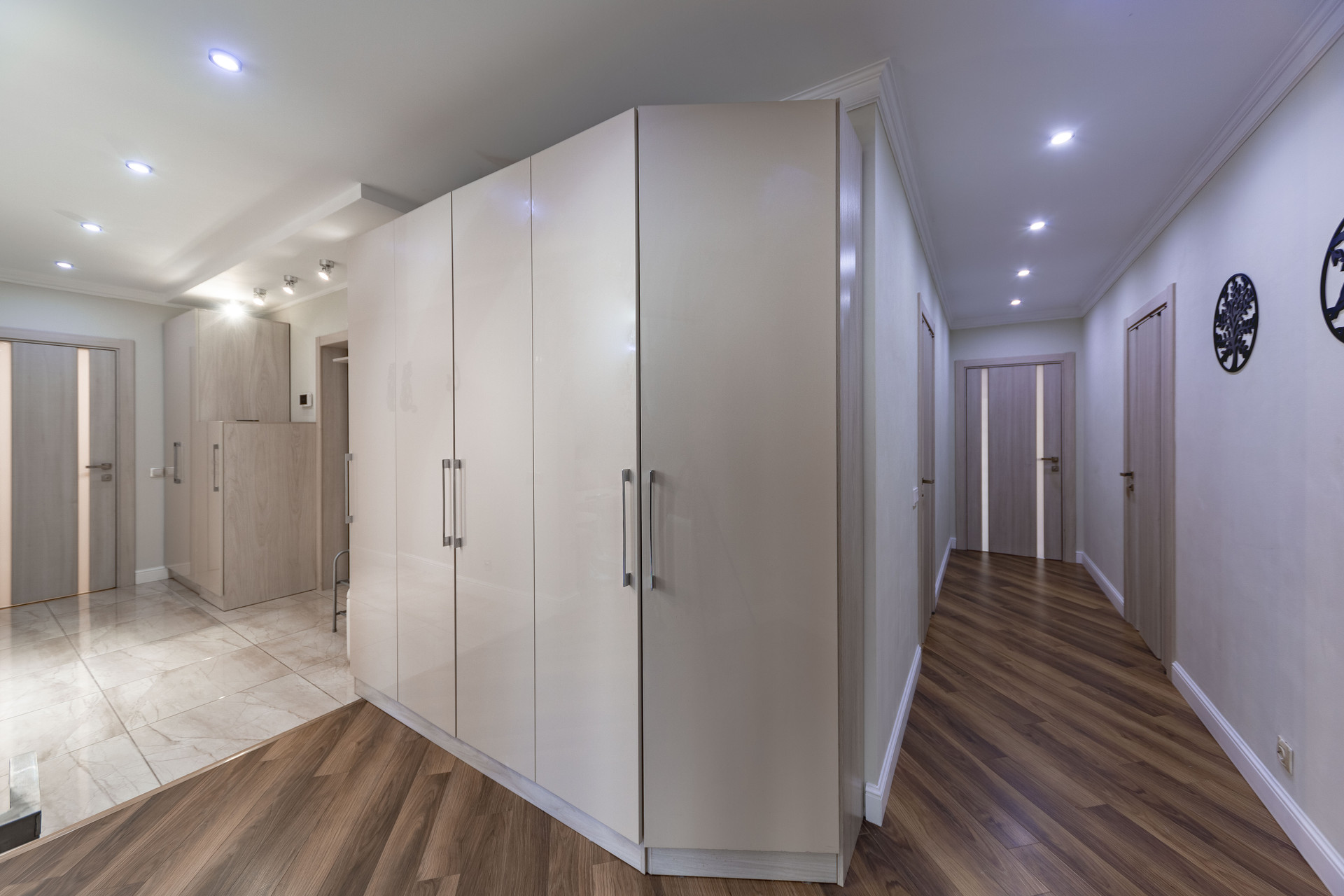 Отдельная, вместительная гардеробная оснащена системами хранения.