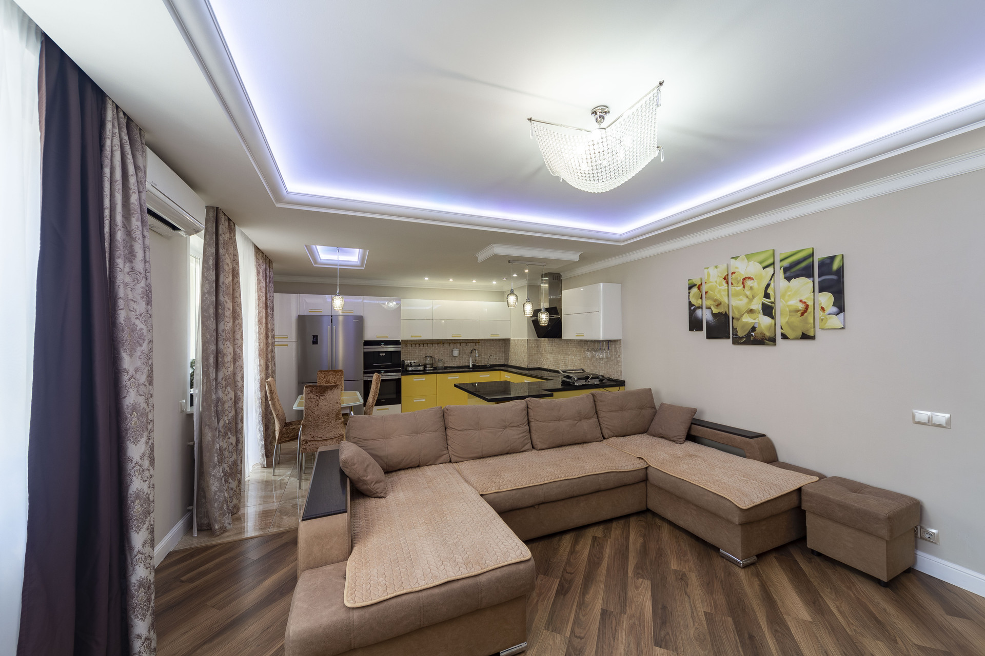 В квартире выполнен отличный ремонт. При отделке использовались только качественные материалы. Отлично продумана система освещения по всему периметру квартиры. Эргономика и уютная планировка позволит без проблем разместиться большой семье.