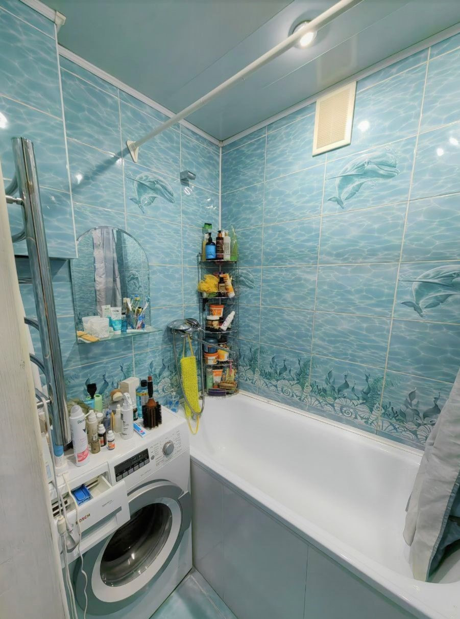 Косметический ремонт. Балкон обит деревянной рейкой. Остается большая часть мебели, кондиционер, встроенная система фильтрации воды, водонагреватель.