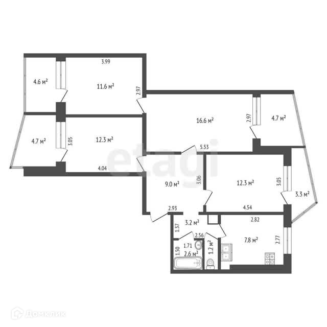 Общая площадь с учетом лоджий 94,2кв.м., общая 76,9 кв.м., жилая 52,8кв.м. Кухня 7,8 кв.м, газ, горячая вода. Санузел раздельный. Прихожая 9 кв.м. Мусоропровод. Перепланировок не было.Требуется частично ремонт.