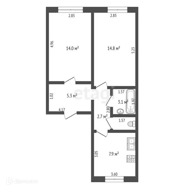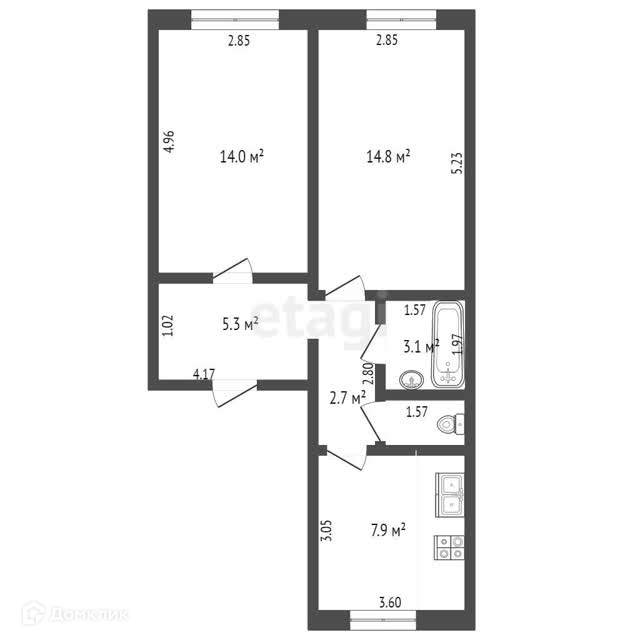 Общая площадь 49.3 м2