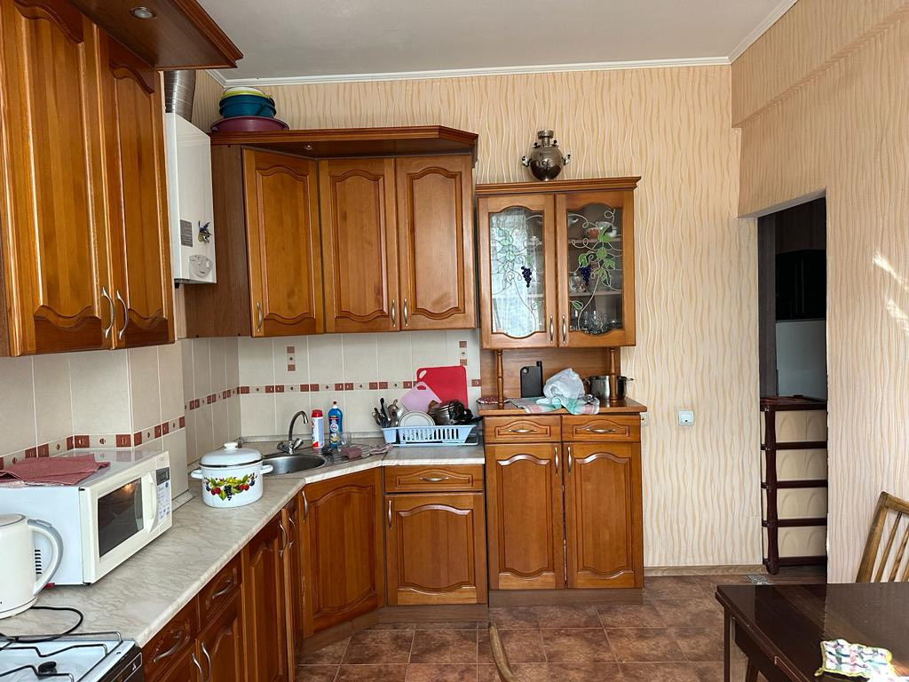 Продам трехкомнатную уютную квартиру в состоянии в добротном кирпичном доме. В квартире 2 комнаты смежные и 1 раздельная, просторная кухня 8 кв м и большой совмещенный санузел. В кухне остается качественный кухонный гарнитур из натурального дерева. Все стены выровнены , проводка и коммуникации поменяны.подъезд чистый, пластиковые окна , двор и парковка благоустроены. Любая форма оплаты. Звоните.