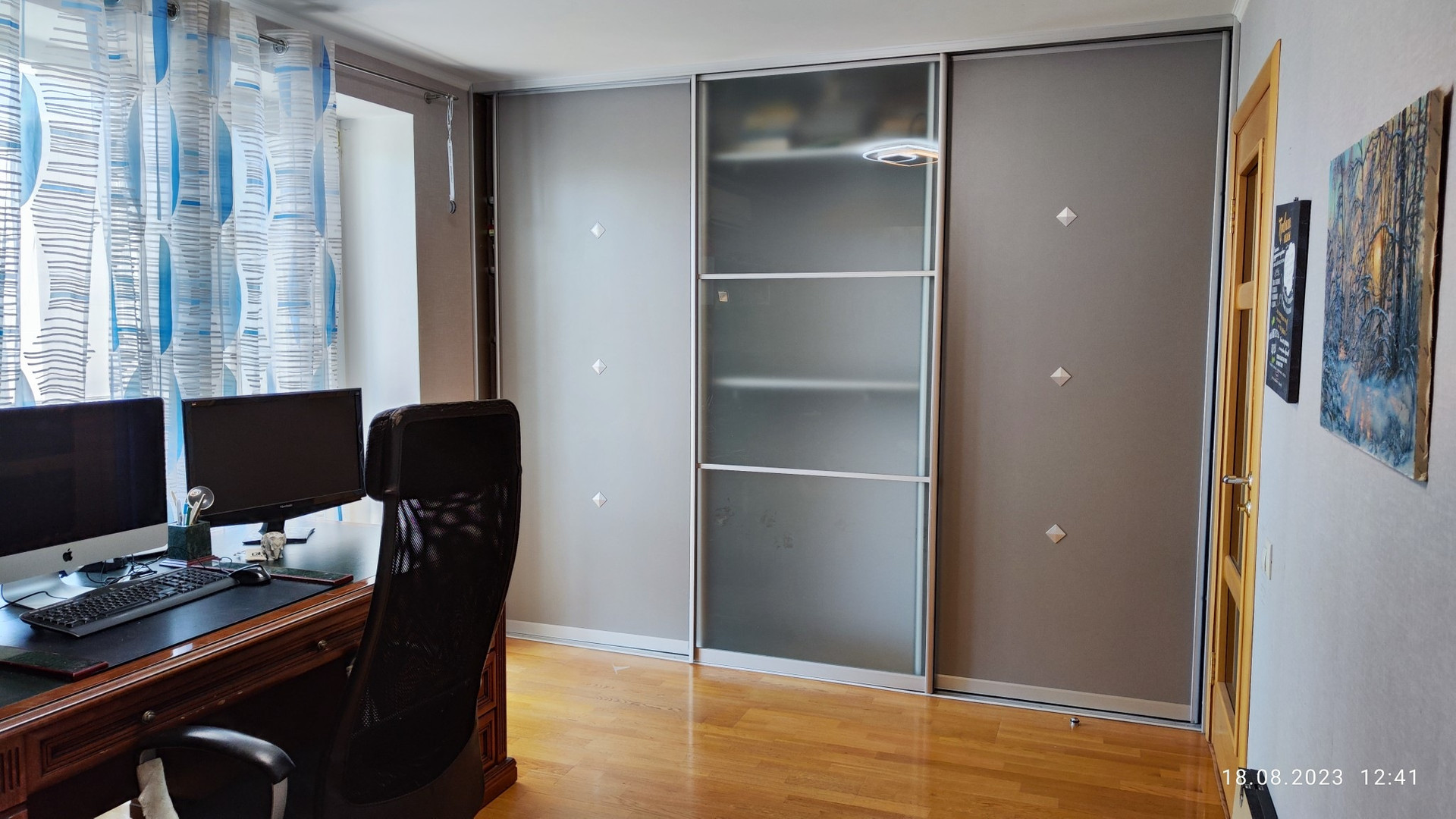 В каждой комнате кондиционер, большой шкаф-купе в комнате и при входе. Оставляем все, что есть на фото!