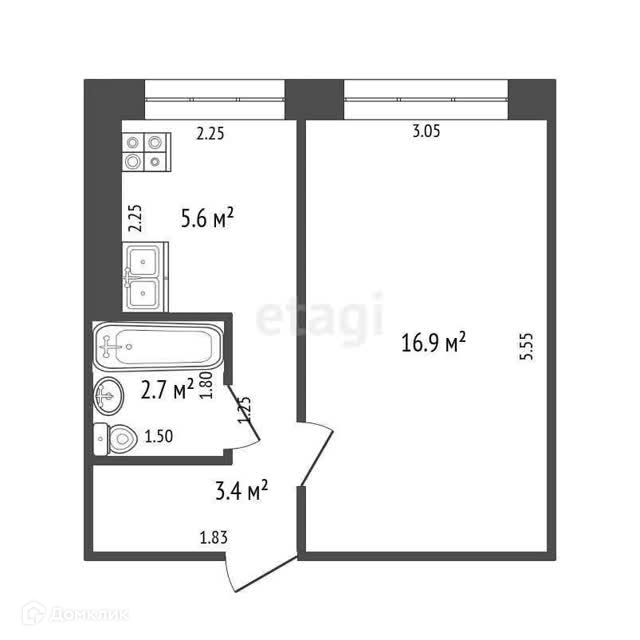 Площадь кухни 5.7 м2