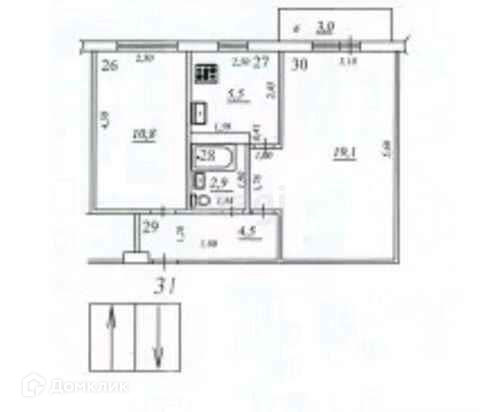 Общая площадь 42.3 м2