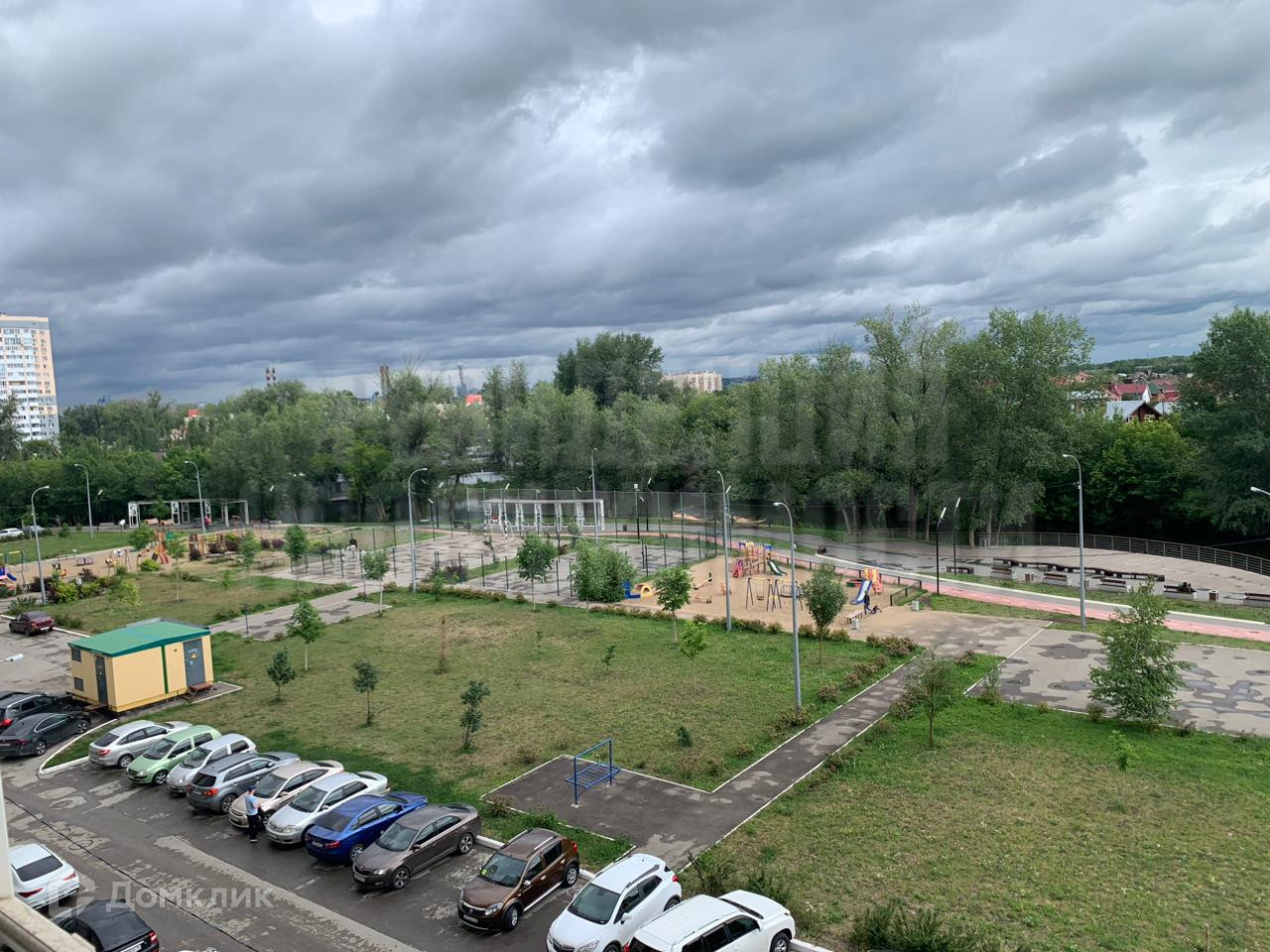 Во дворе расположена большая, современная детская площадка с выделенными велосипедными и пешеходными дорожками, а также в парке есть спортивный городок под открытым небом!