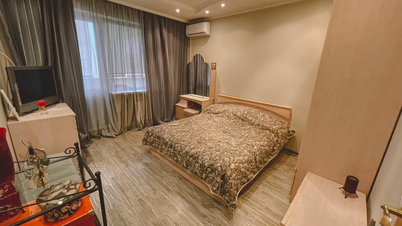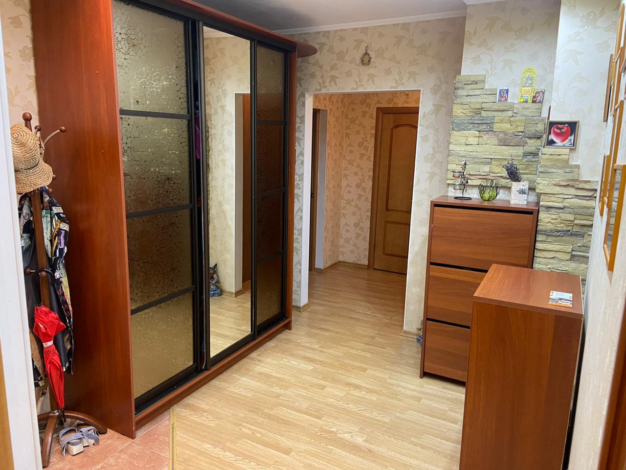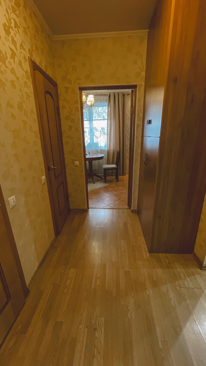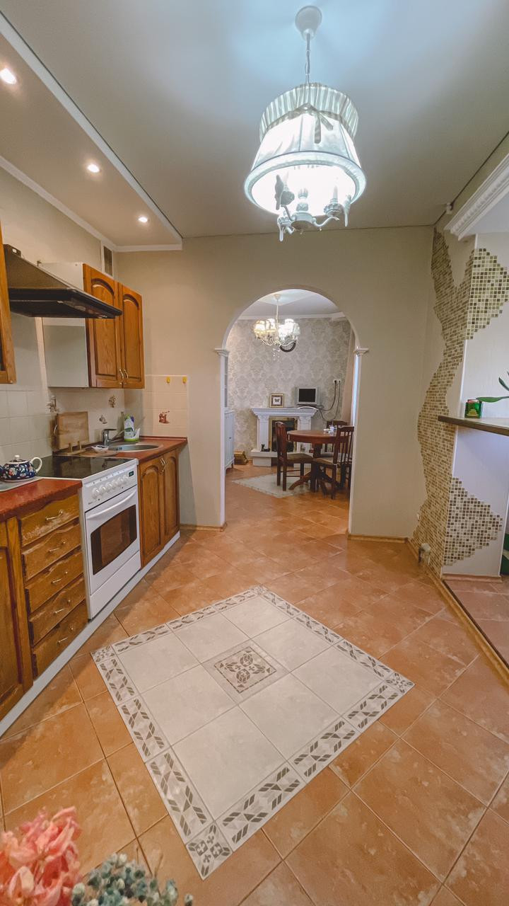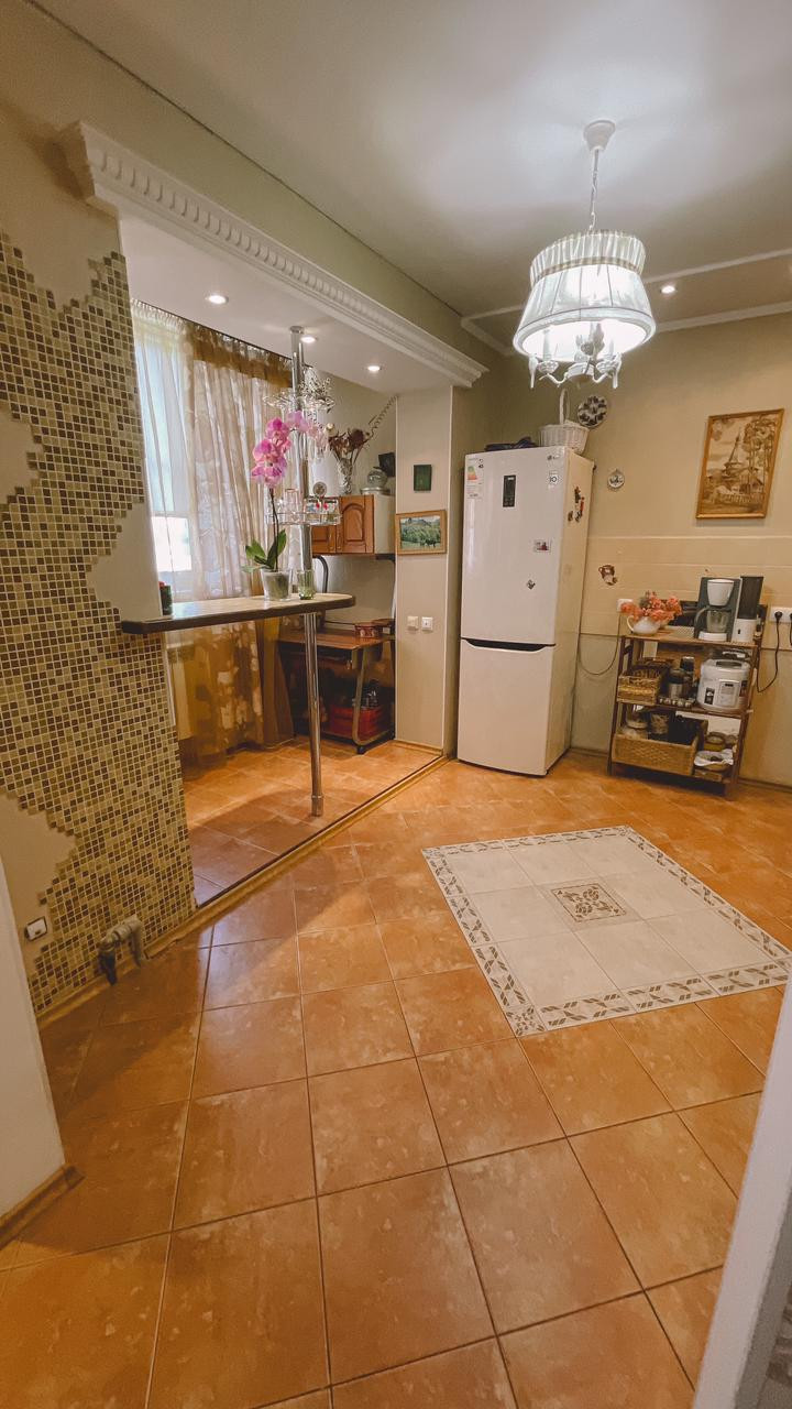 Ранее был выполнен ремонт с выравниваем стен и полов. На полах в кухне и части коридора качественная керамическая плитка, в комнатах – ламинат, двухуровневые потолки, имеется 2 кондиционера, водонагреватель, электрический камин.
