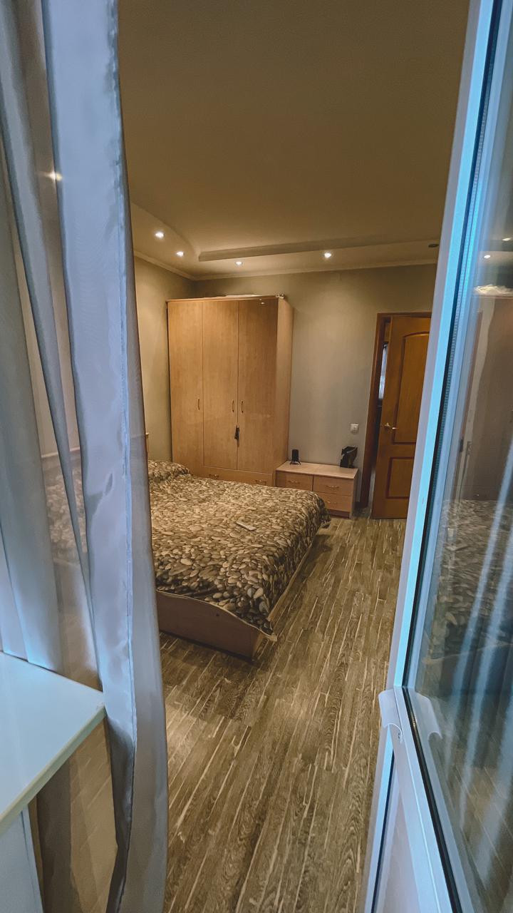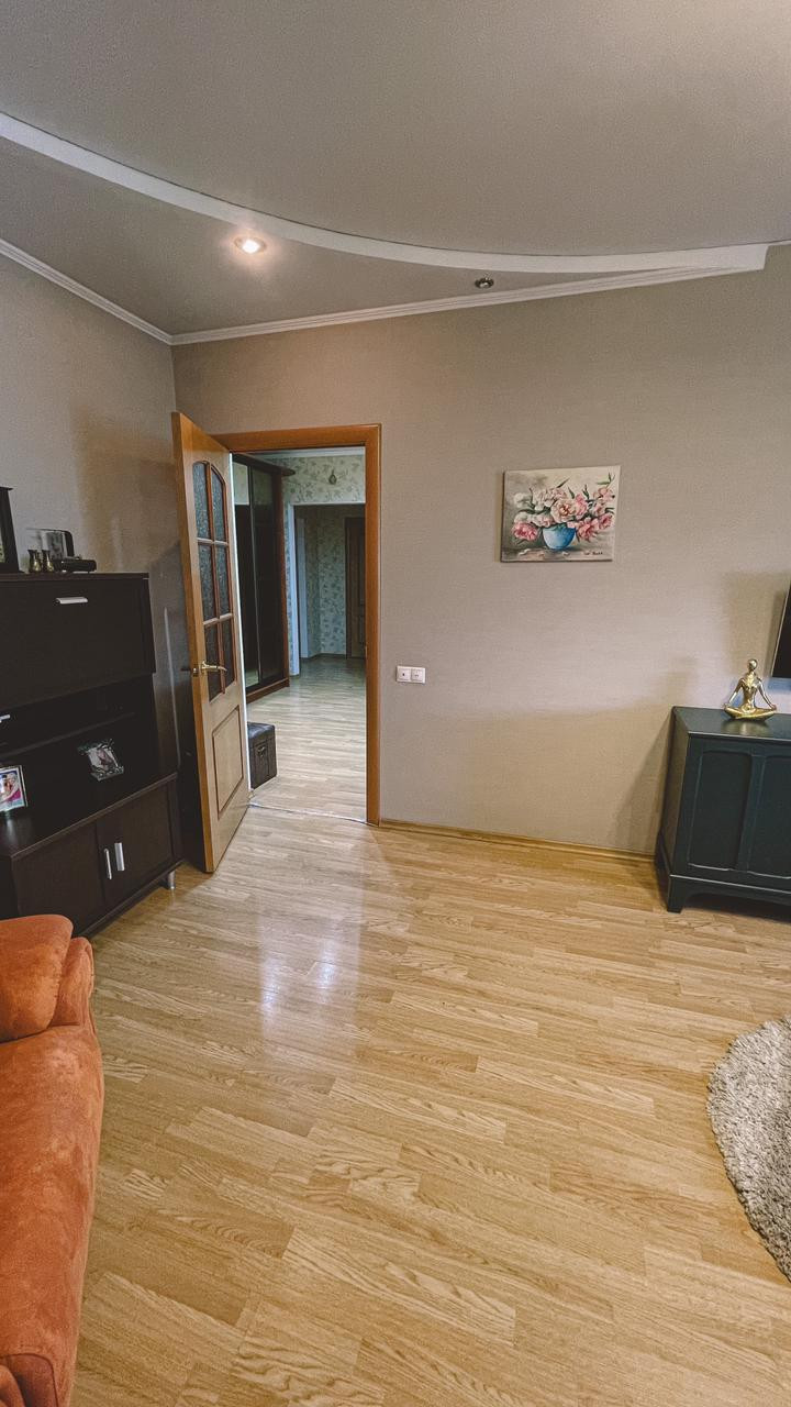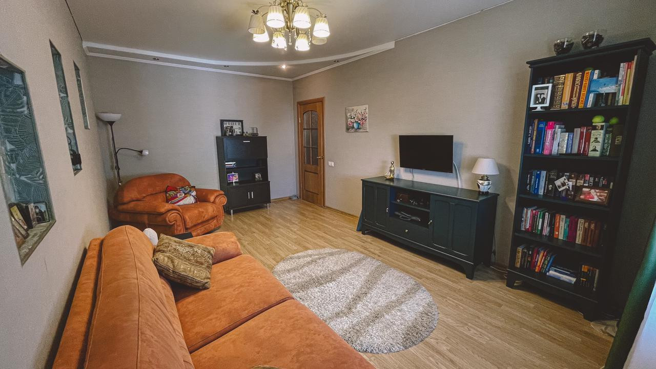 Квартира общей площадью 69,9 кв. м (без учета лоджии 3,7 кв. м (застеклена, с ремонтом и встроенным шкафом) и балкона 1,5 кв. м), на две стороны.