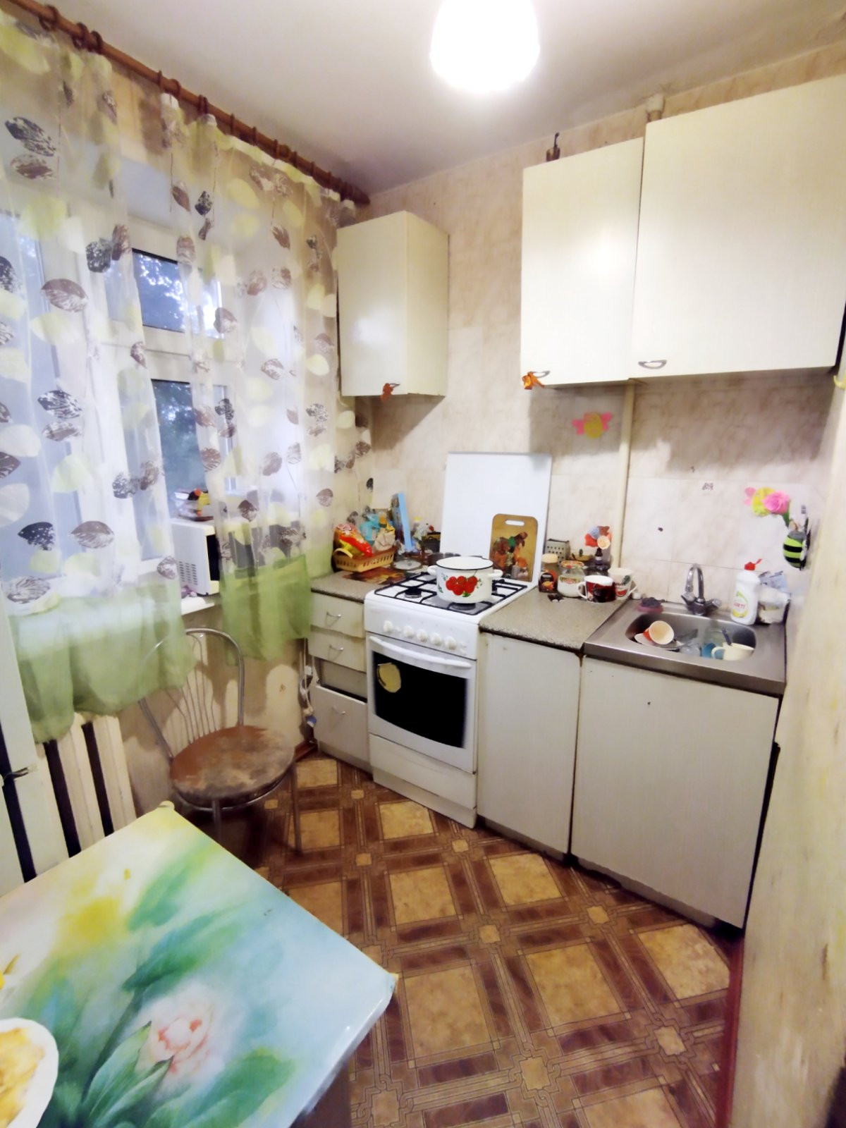 Квартира не угловая, теплая. Окна хорошие, пластиковые Rexau, балкон застеклен, так же хорошими стеклопакетами, обит вагонкой, качественная входная дверь в квартиру. В остальном нужен ремонт