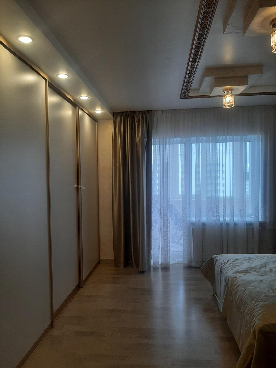 В спальне шкаф-купе во всю стену.
