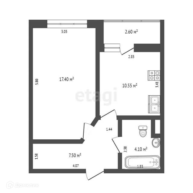 Общая площадь 41 м2