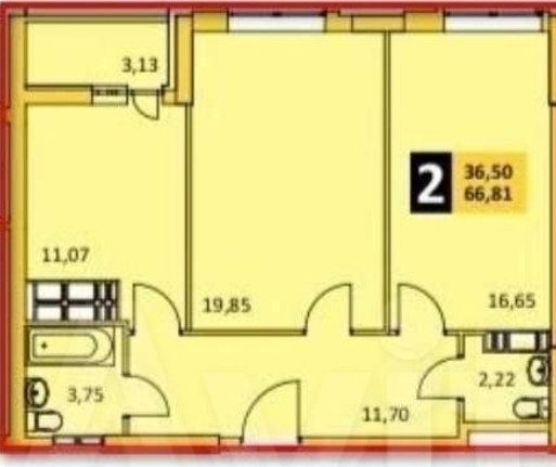 Жилая площадь 36.5 м2