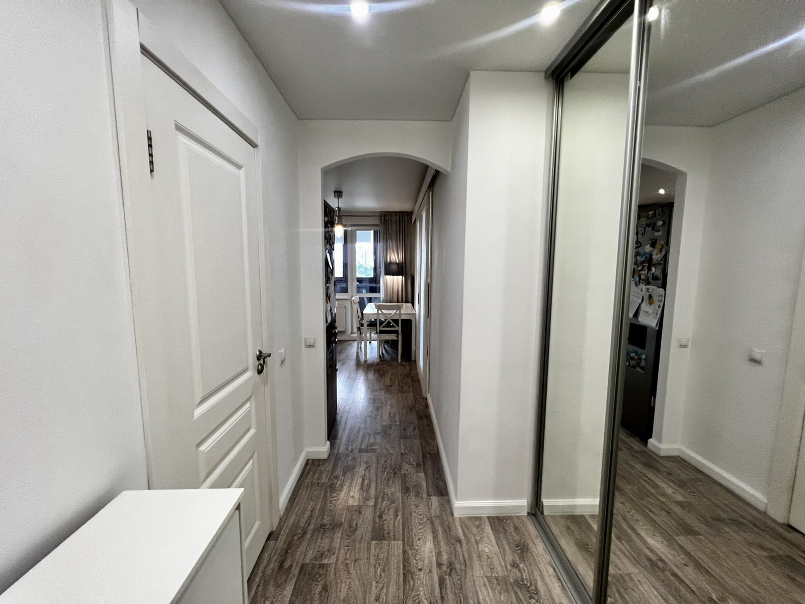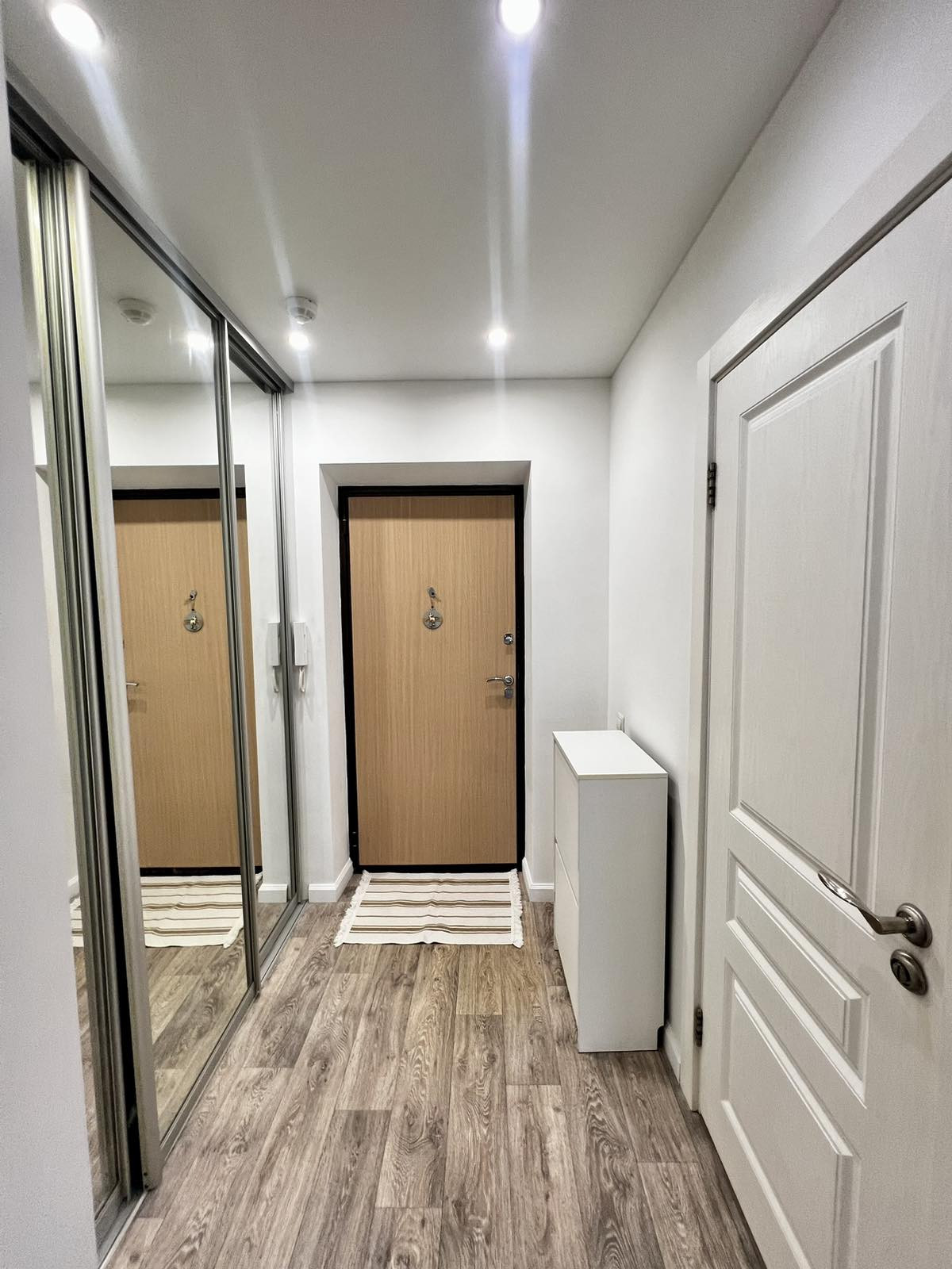В квартире выполнен ремонт в 2018 г., стены под покраску, на полу линолеум премиального качества, натяжной потолок;