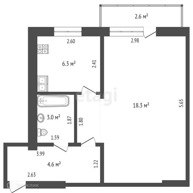 Балкон, лоджия 1 балкон