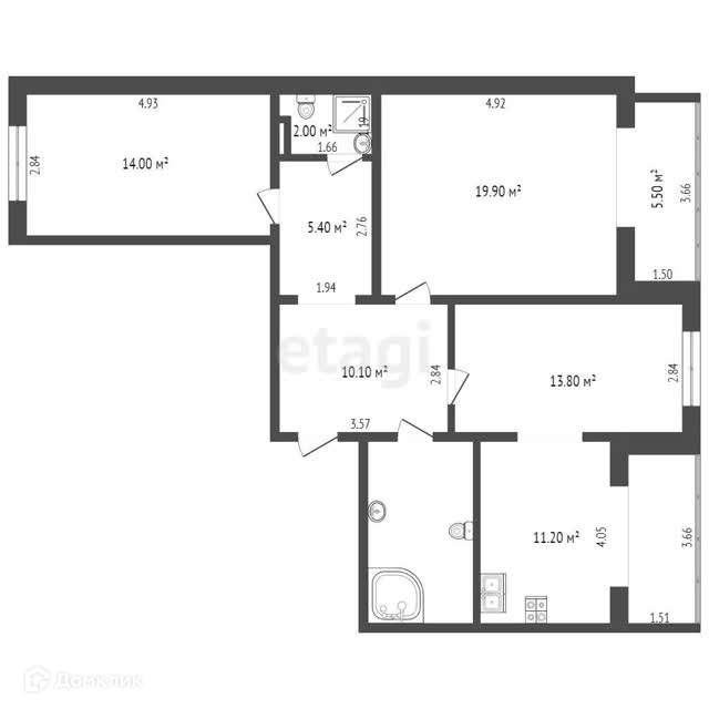 Шикарная светлая спальня с оборудованной на лоджии рабочей зоной, просторная детская комната, 2 санузла, а так же большое количество мест для хранения дадут возможность большой семье чувствовать себя максимально комфортно.