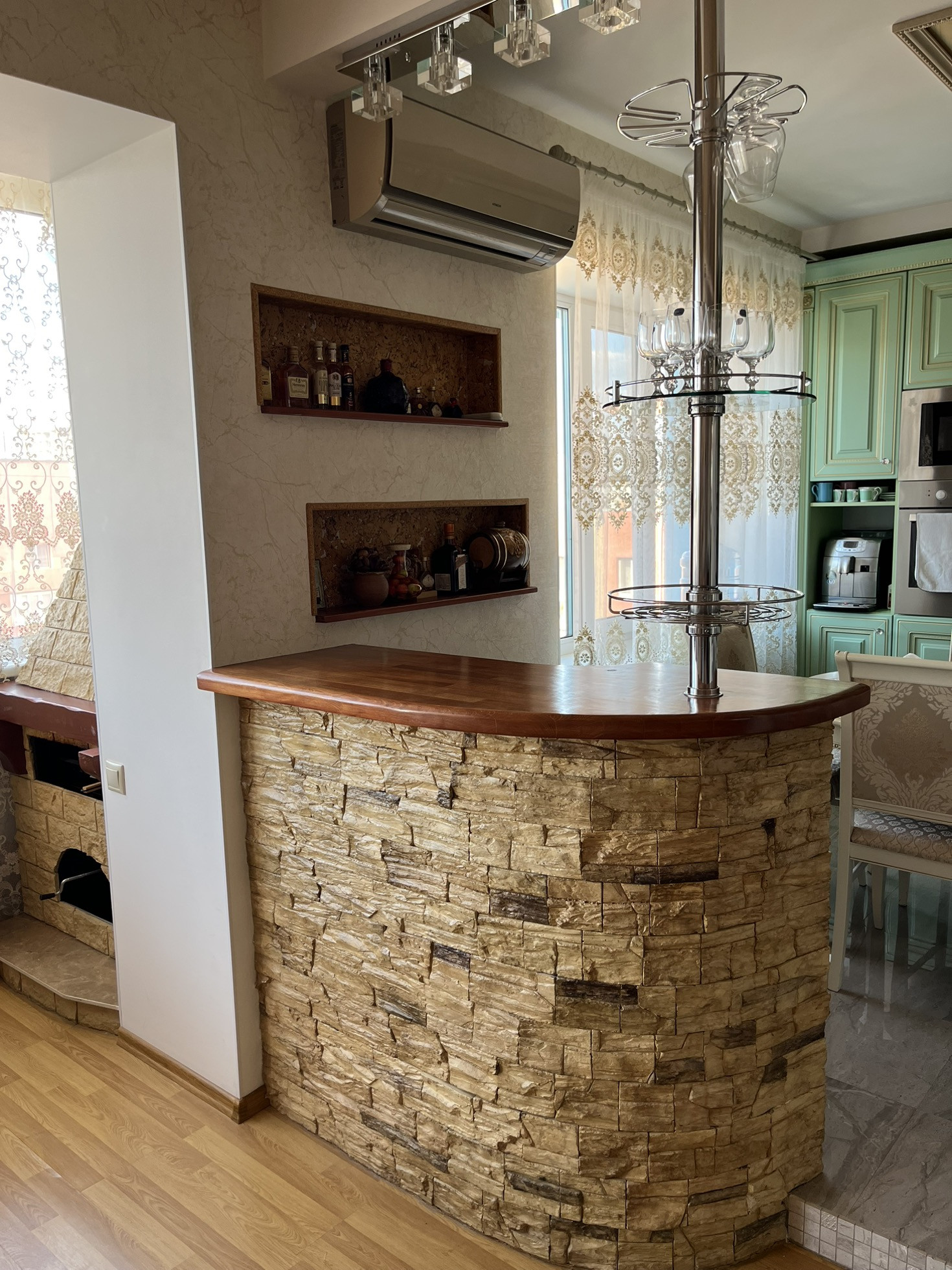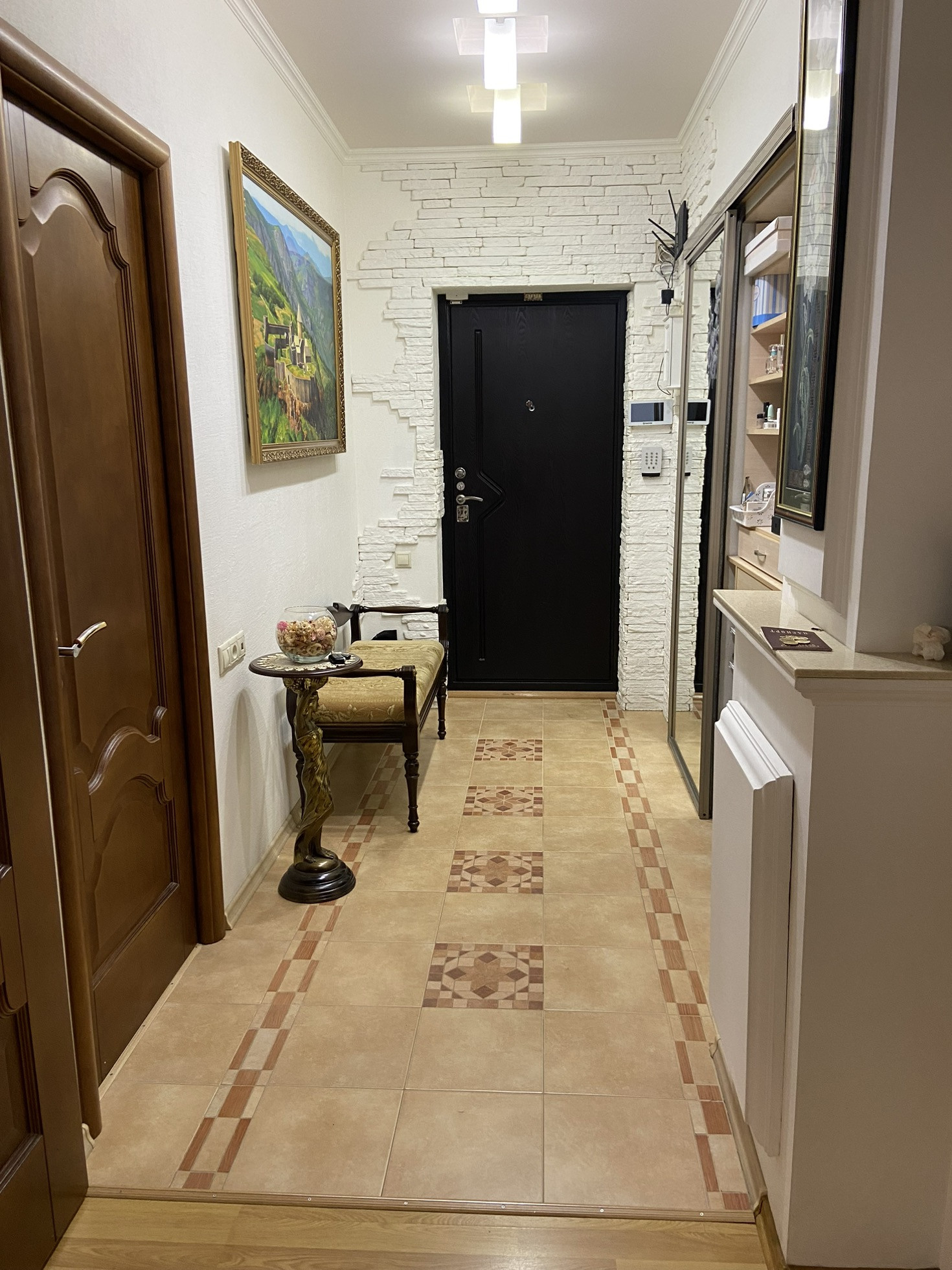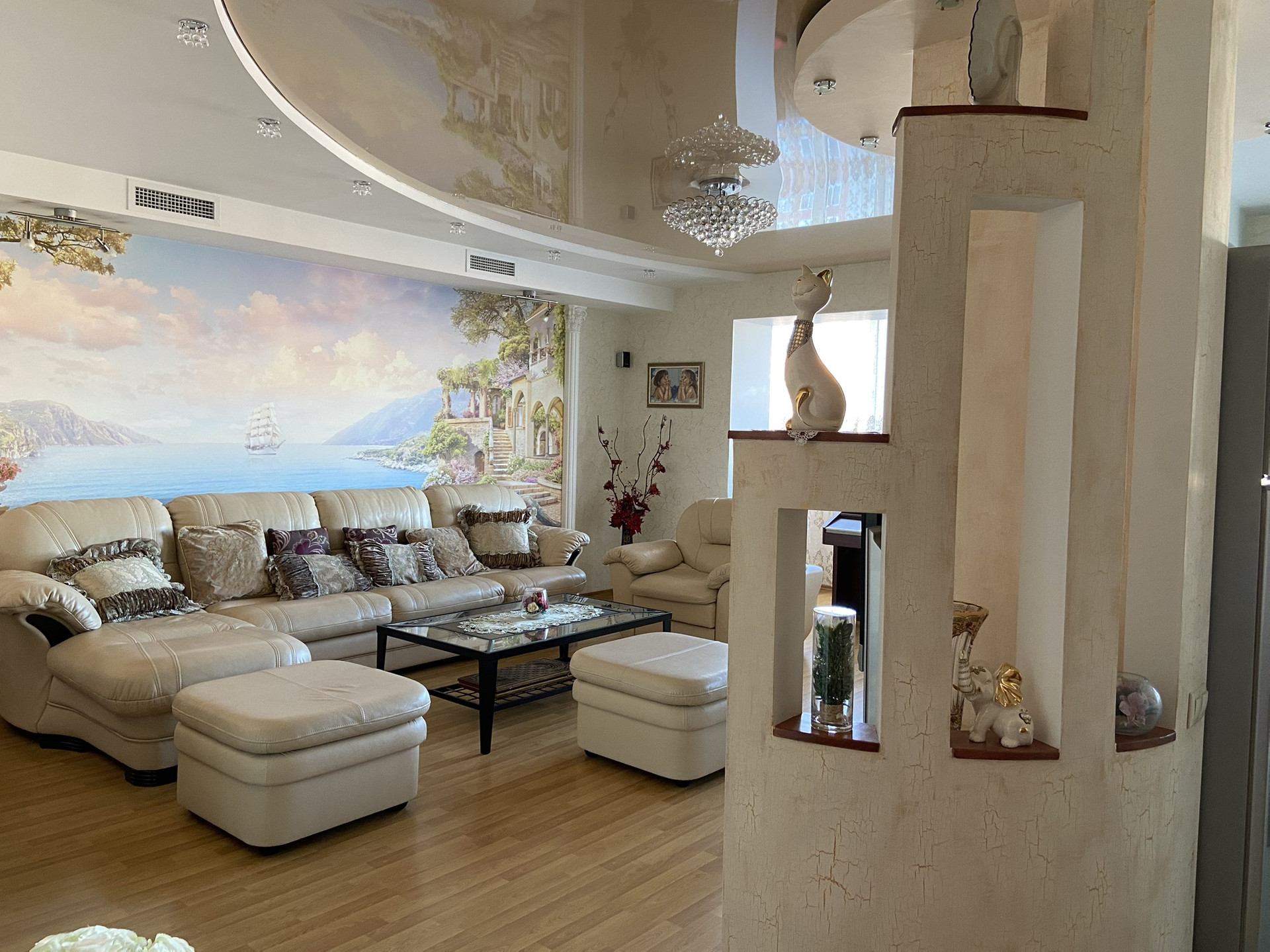 этаже. Ремонт свежий. Квартира мебелирована, система вентиляции проведена по всей квартире, имеется вытяжка кухни и гостиной. В гостиной установлен электрический мангал. Также на кухне и в одной из комнат имеется кондиционер. В санузле установлен турецкий хамам (11 фото)