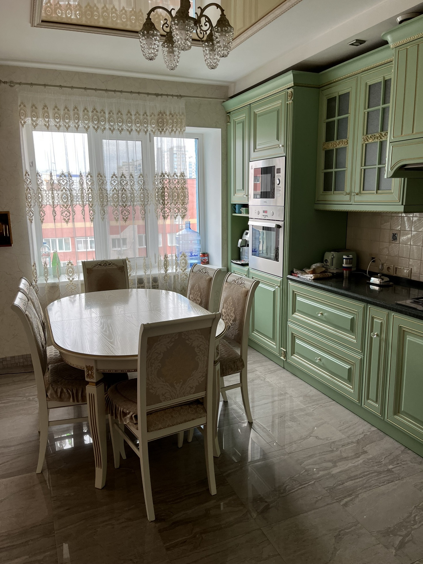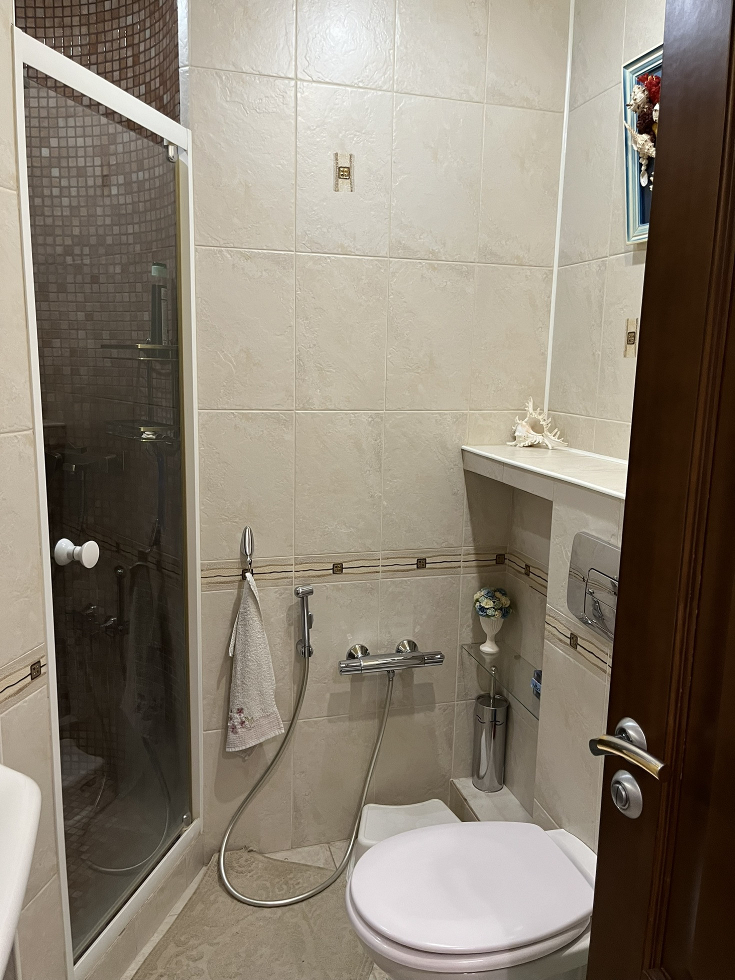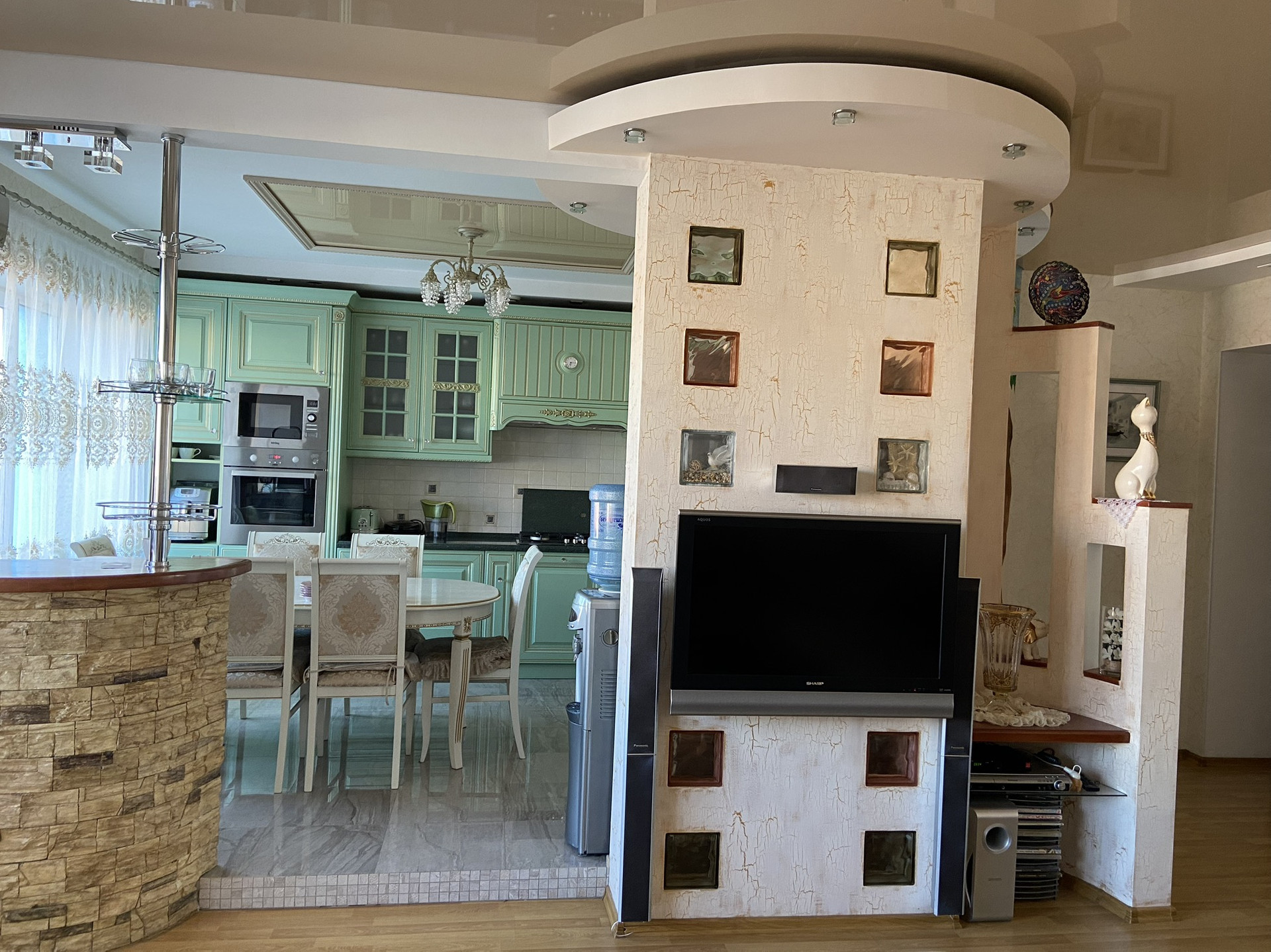 этаже. Ремонт свежий. Квартира мебелирована, система вентиляции проведена по всей квартире, имеется вытяжка кухни и гостиной. В гостиной установлен электрический мангал. Также на кухне и в одной из комнат имеется кондиционер. В санузле установлен турецкий хамам (11 фото)