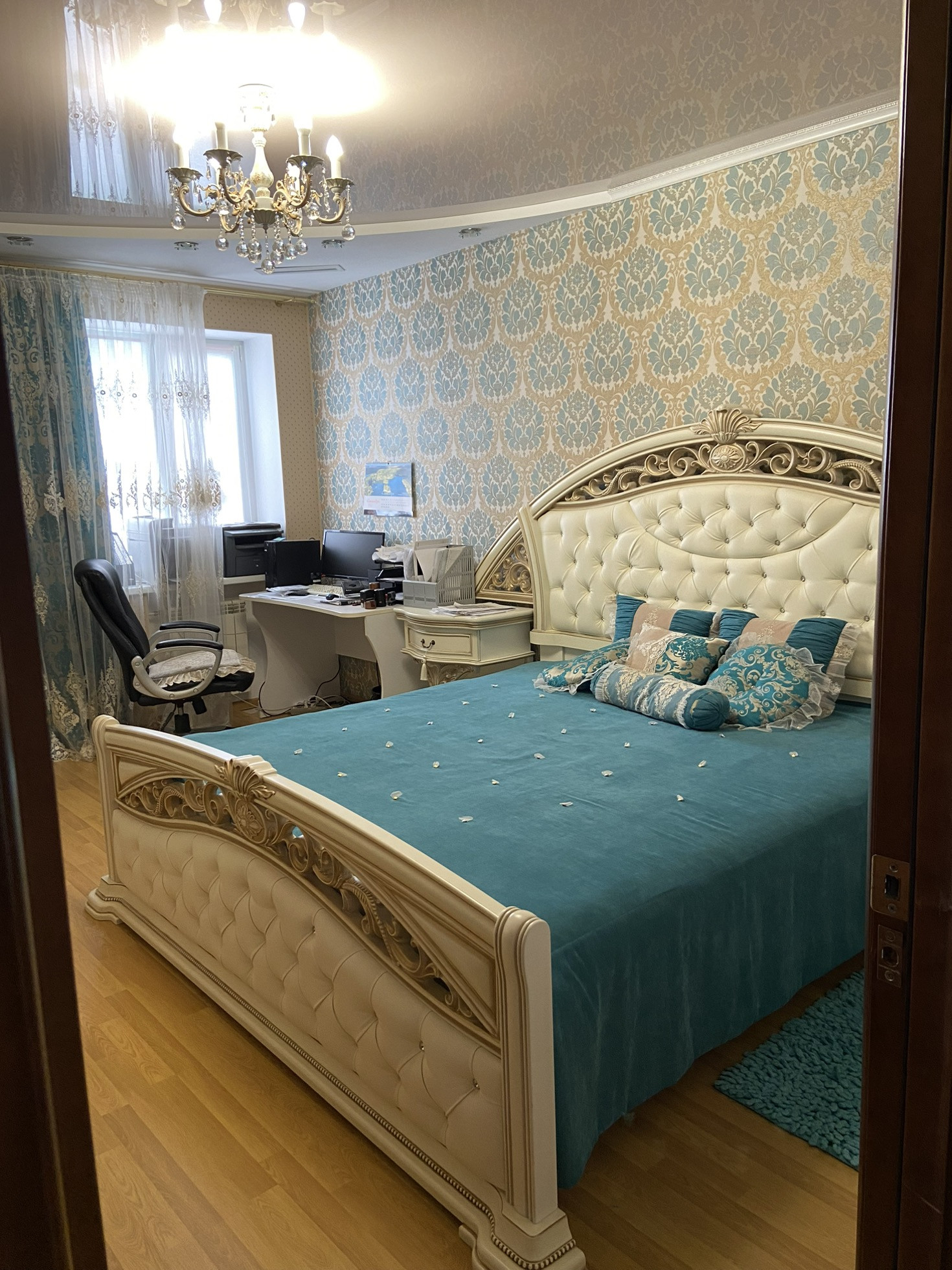 В квартире: 3 спальни, 3 шкаф-купе, 2 совмещенных санузла, кухня, 4 лоджии.