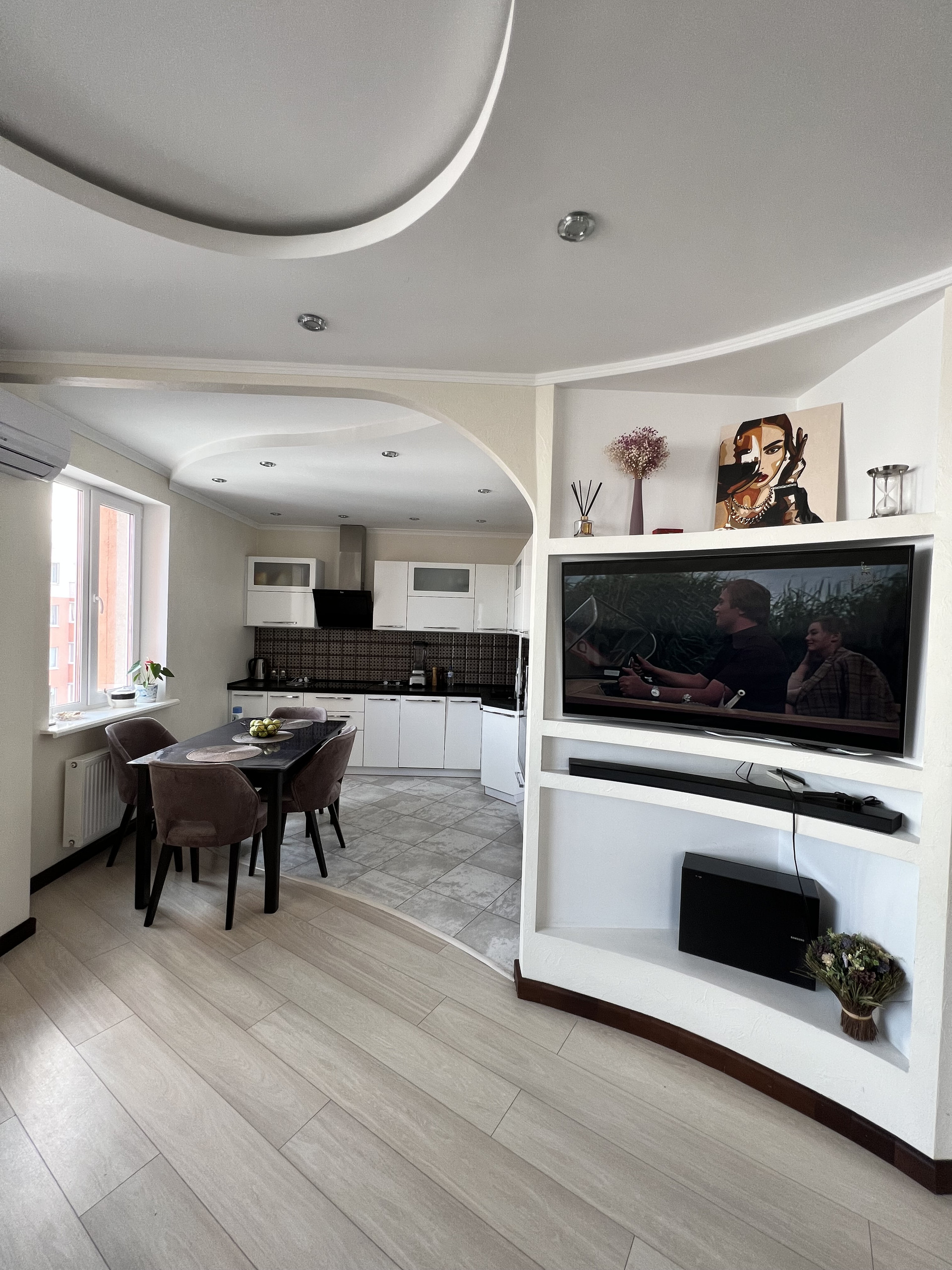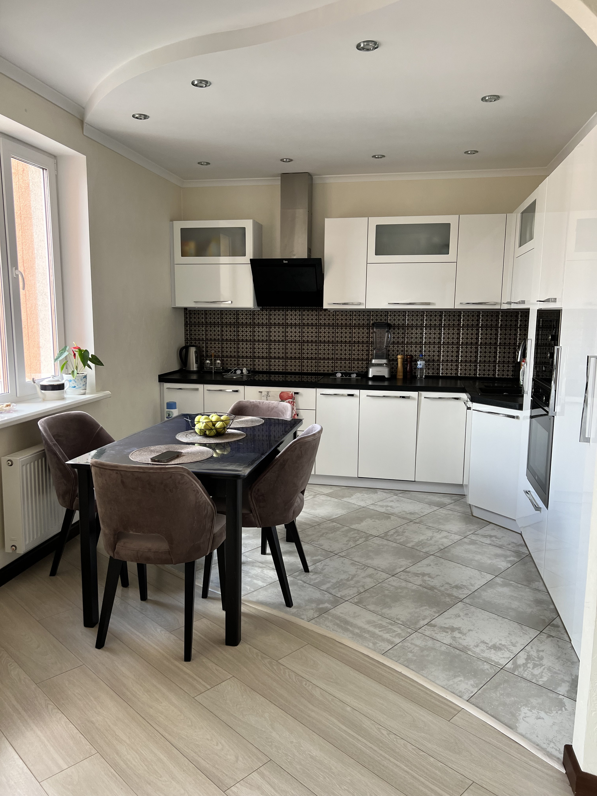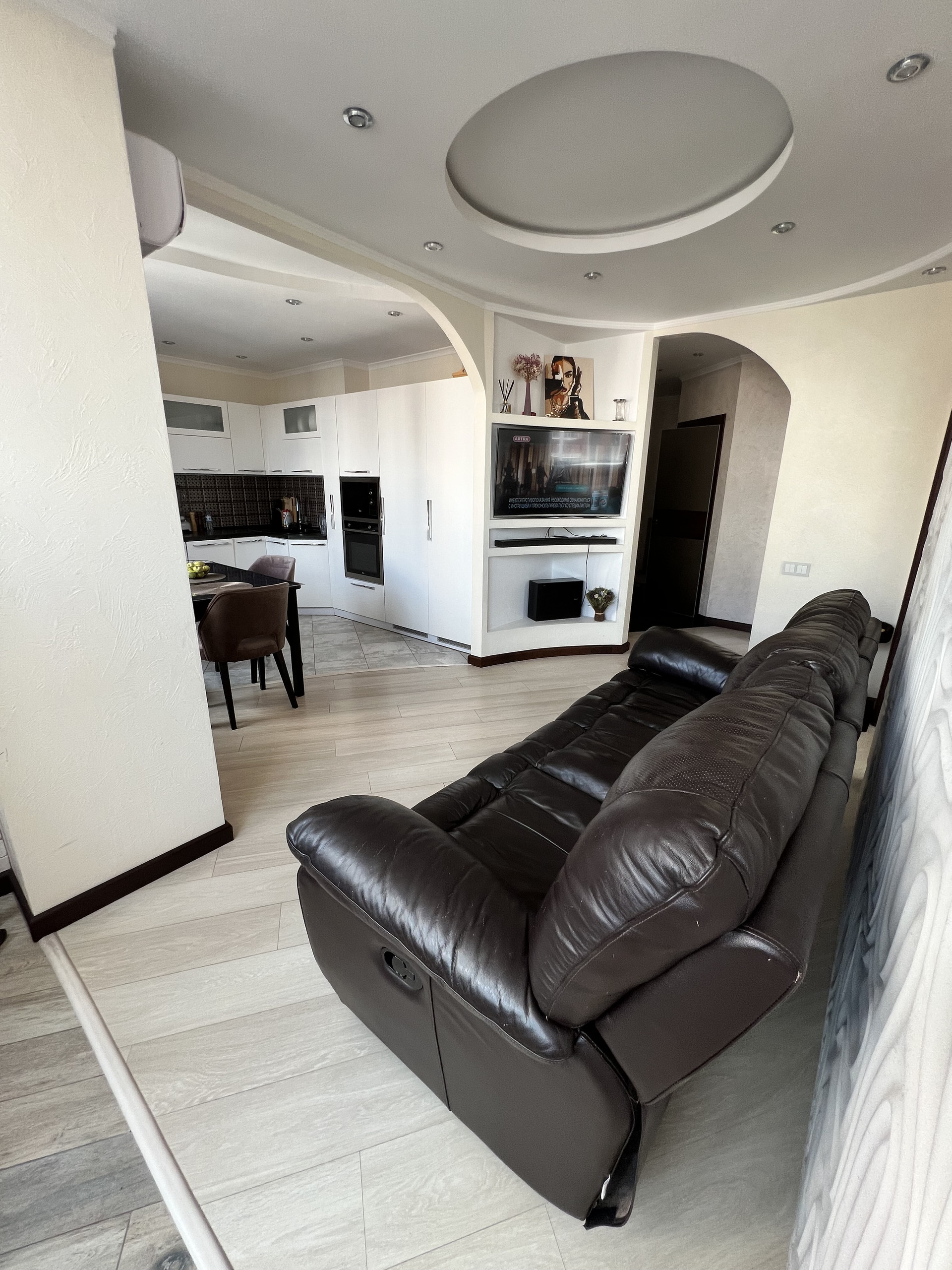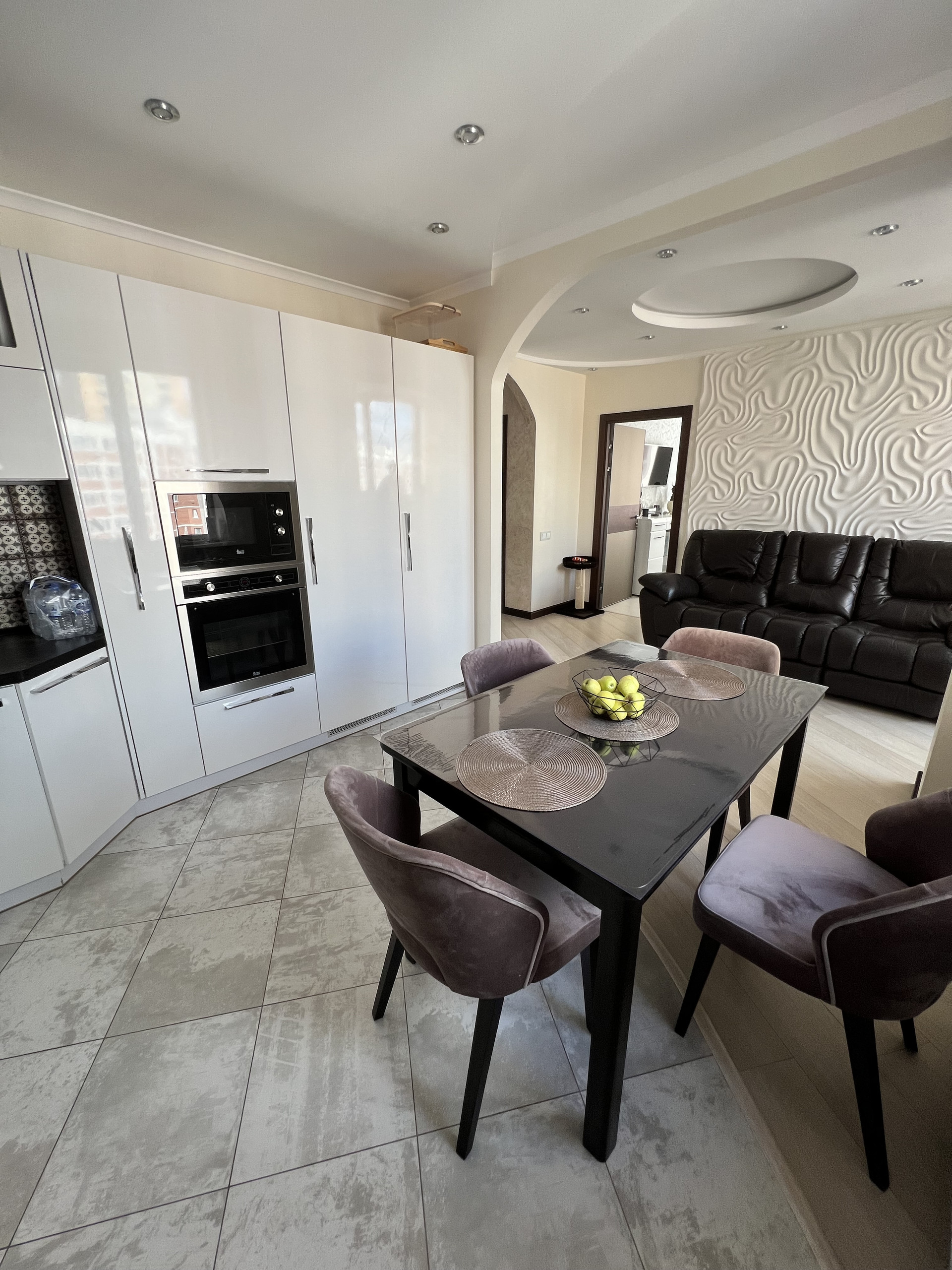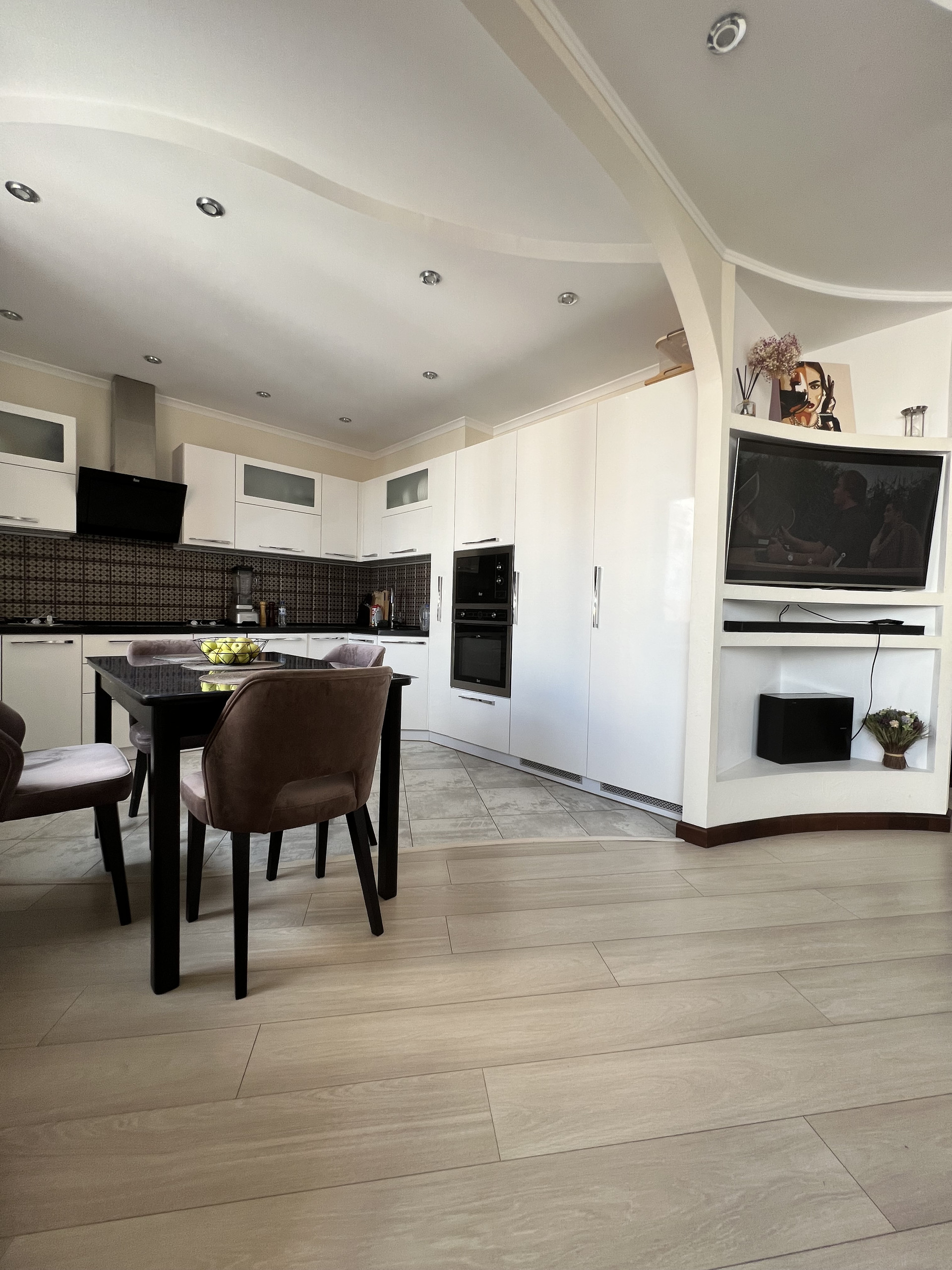 Просторная кухня-гостиная 17 кв.м., где собираться будет вся семья. Кухонный гарнитур со встроенной техникой премиум класса: электроплита, духовой шкаф, посудомоечная машина, холодильник, кондиционер, установлены фильтры для воды.