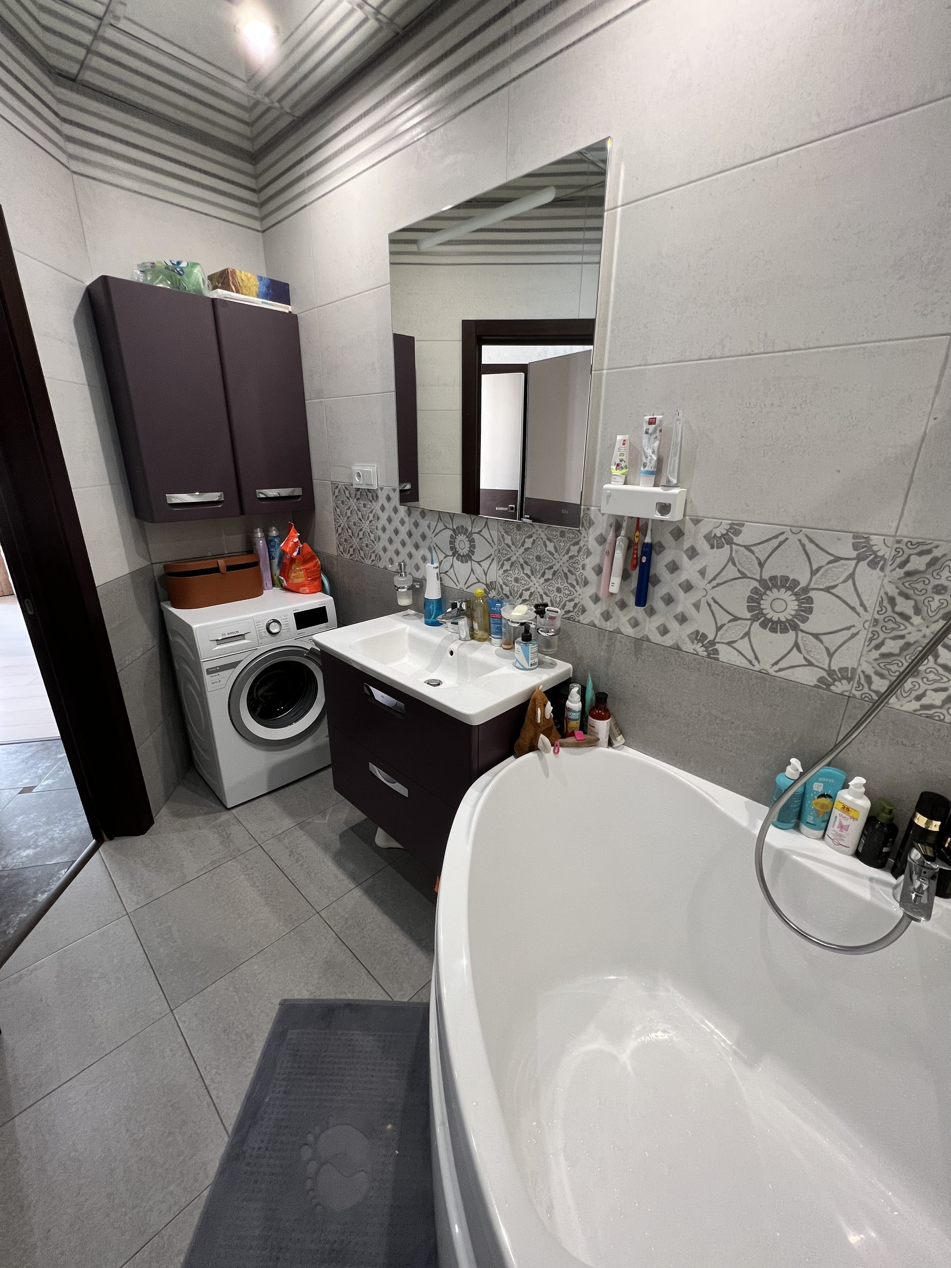 - совмещенный санузел - 8 кв.м. со встроенной мебелью, европейской сантехникой, установлен водонагреватель(на случай отключения горячей воды), стиральная машина-автомат